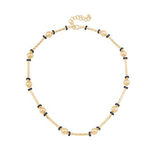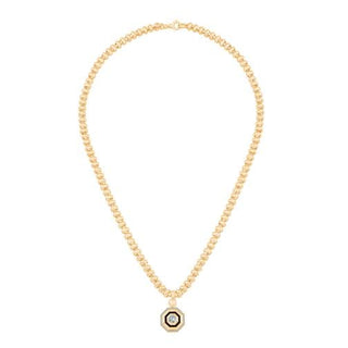 Siyah Mineli Taşlı Top Zincir Altın Kolye