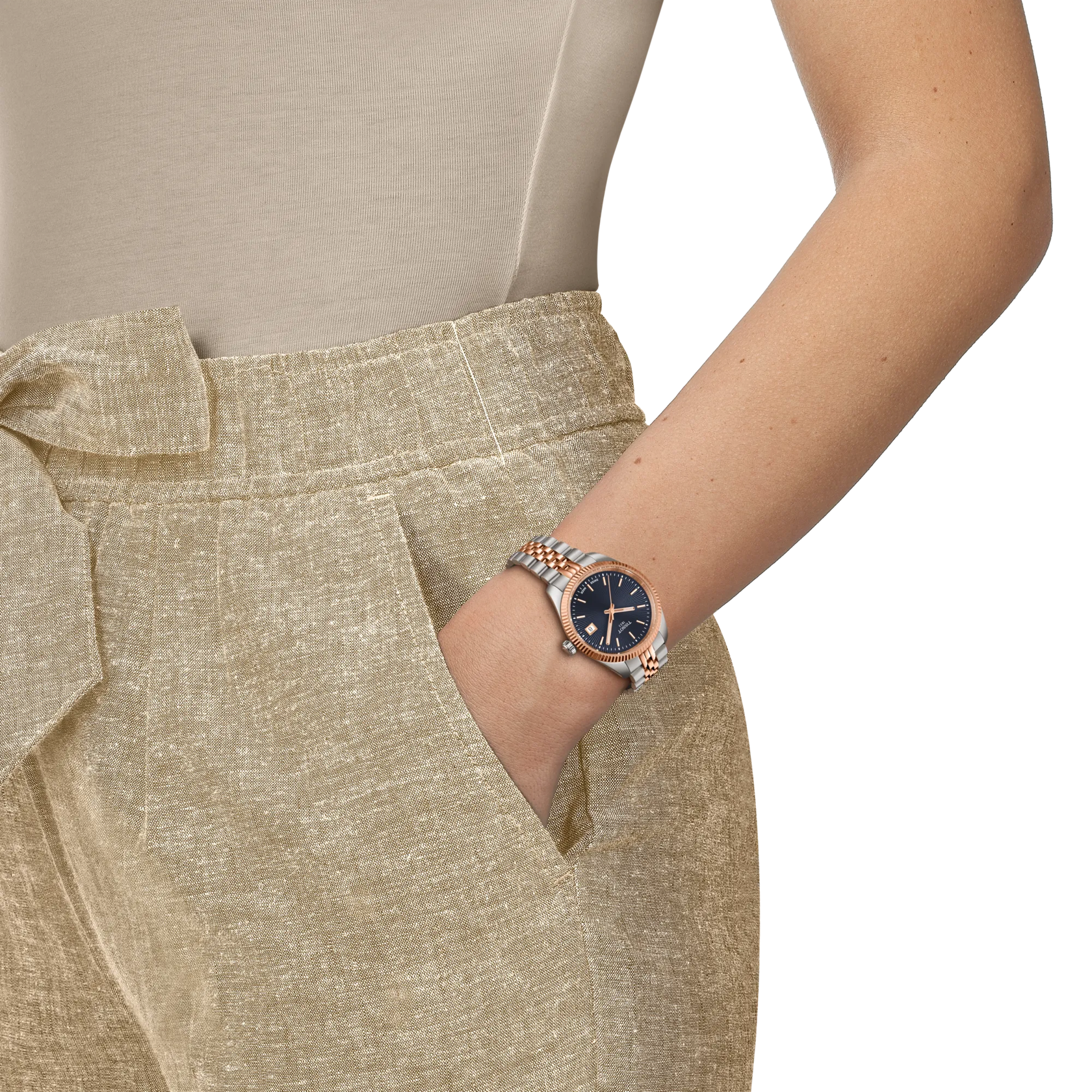 Çap:34 mm 316L paslanmaz çelik kasa pembe altın rengi PVD kaplama ile İsviçre Quartz makine Yansıma önleyici kaplamalı çizilmeye dayanıklı safir kristal Hızlı değiştirilebilir bilezik