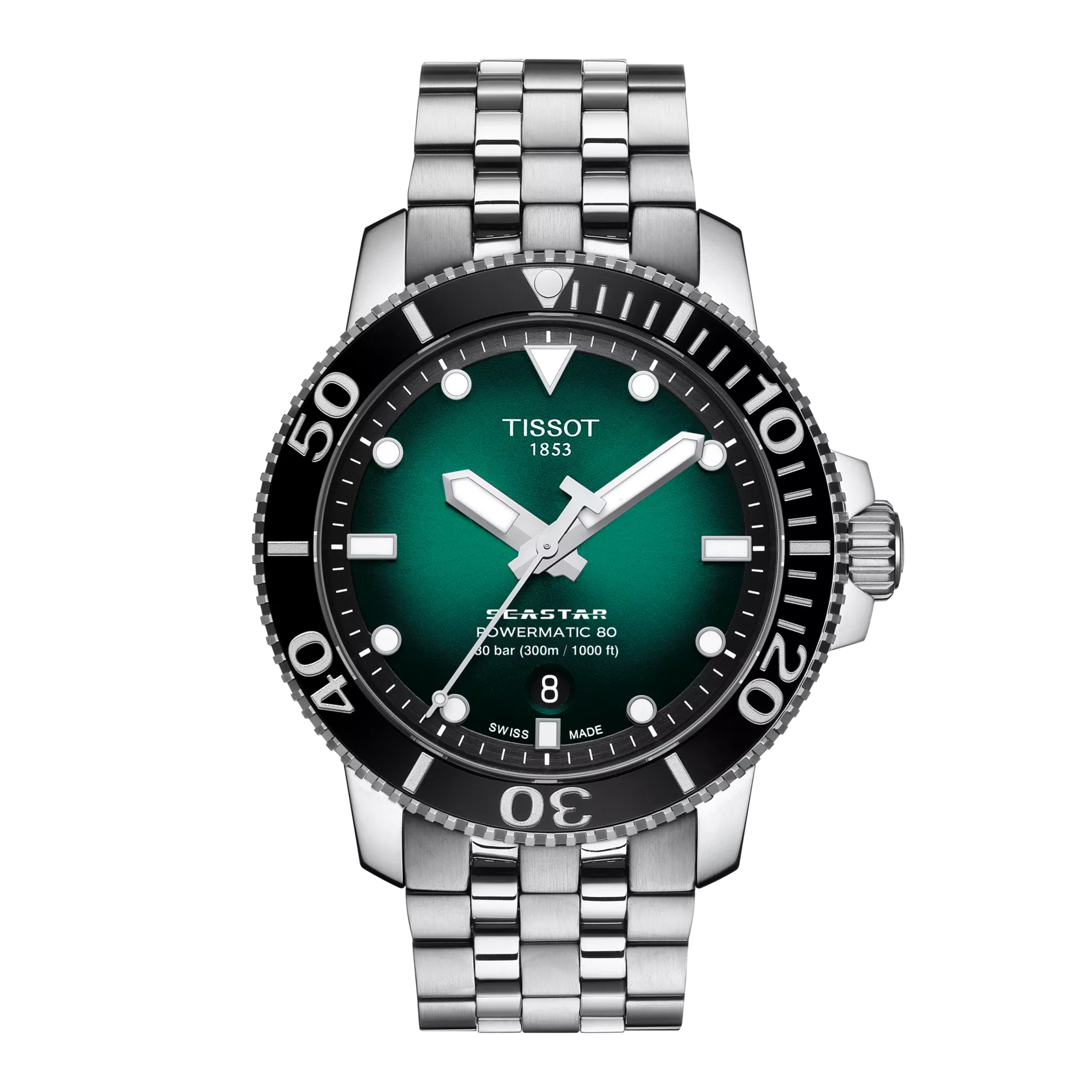 Tissot Seastar 1000, stil ve performansı hiçbirinden ödün vermeden birleştirir. Bu saat, 30 bar'a (300 m/1000 ft) kadar su geçirmezliği, vidalı kurma kolu ve kasa arkası ile en üst düzey su sporu saatidir ve şimdi çoğu otomatik mekanizma 40 saat civarındayken 80 saate kadar güç rezervi sunan Powermatic 80 mekanizmasının enerjisi ile birleşmiştir.