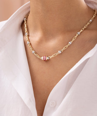 Cetaş Eterna Beyaz Mine ve Taşlı 14 Ayar Zincir Altın Kolye