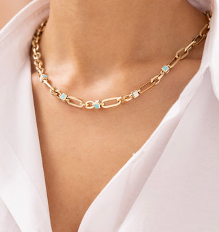Cetaş Eterna Turkuaz Mineli 14 Ayar Altın Zincir Kolye