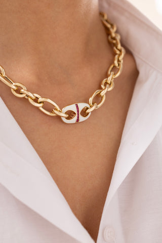 Cetaş Eterna Kırmızı Taşlı 14 Ayar Altın Zincir Kolye