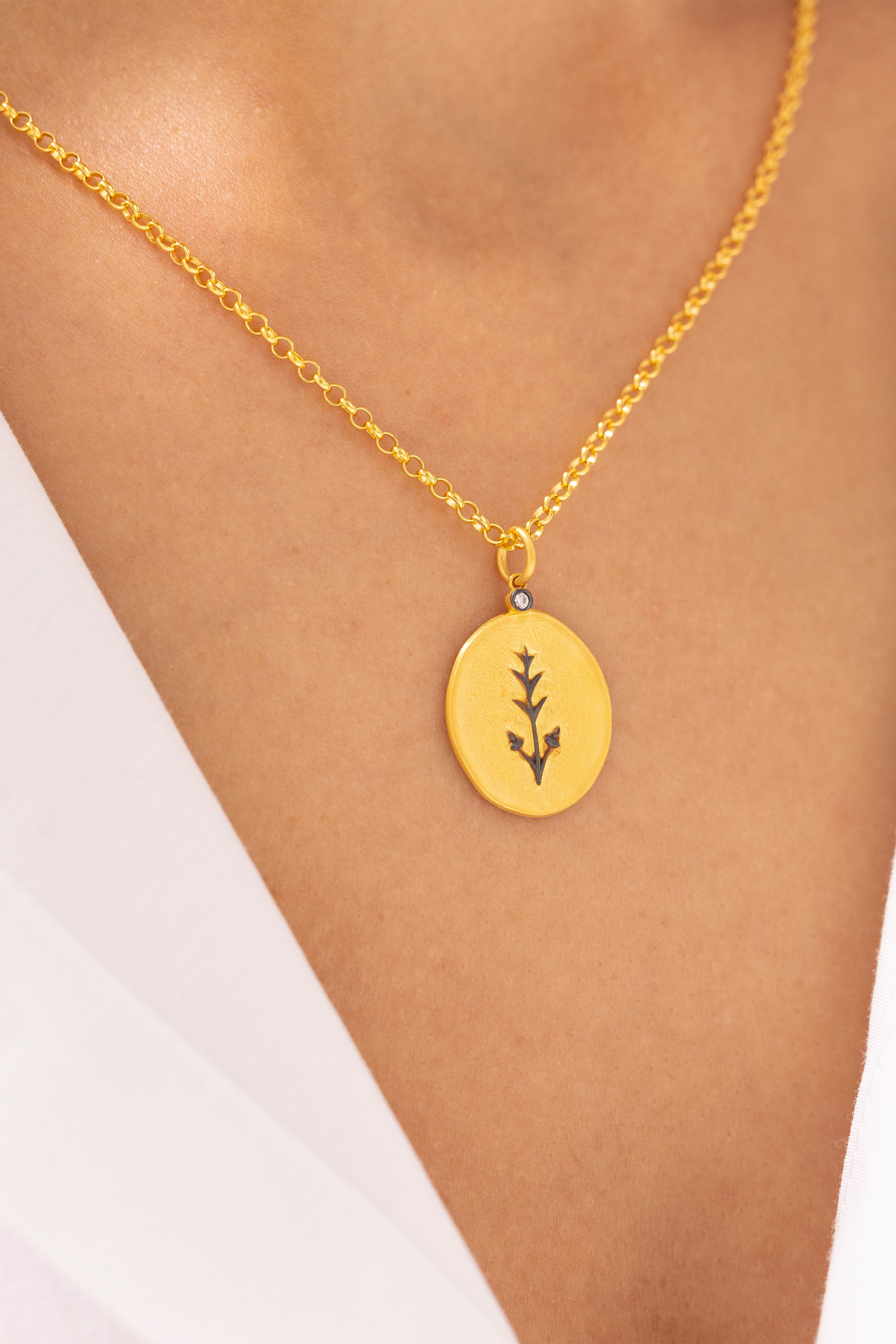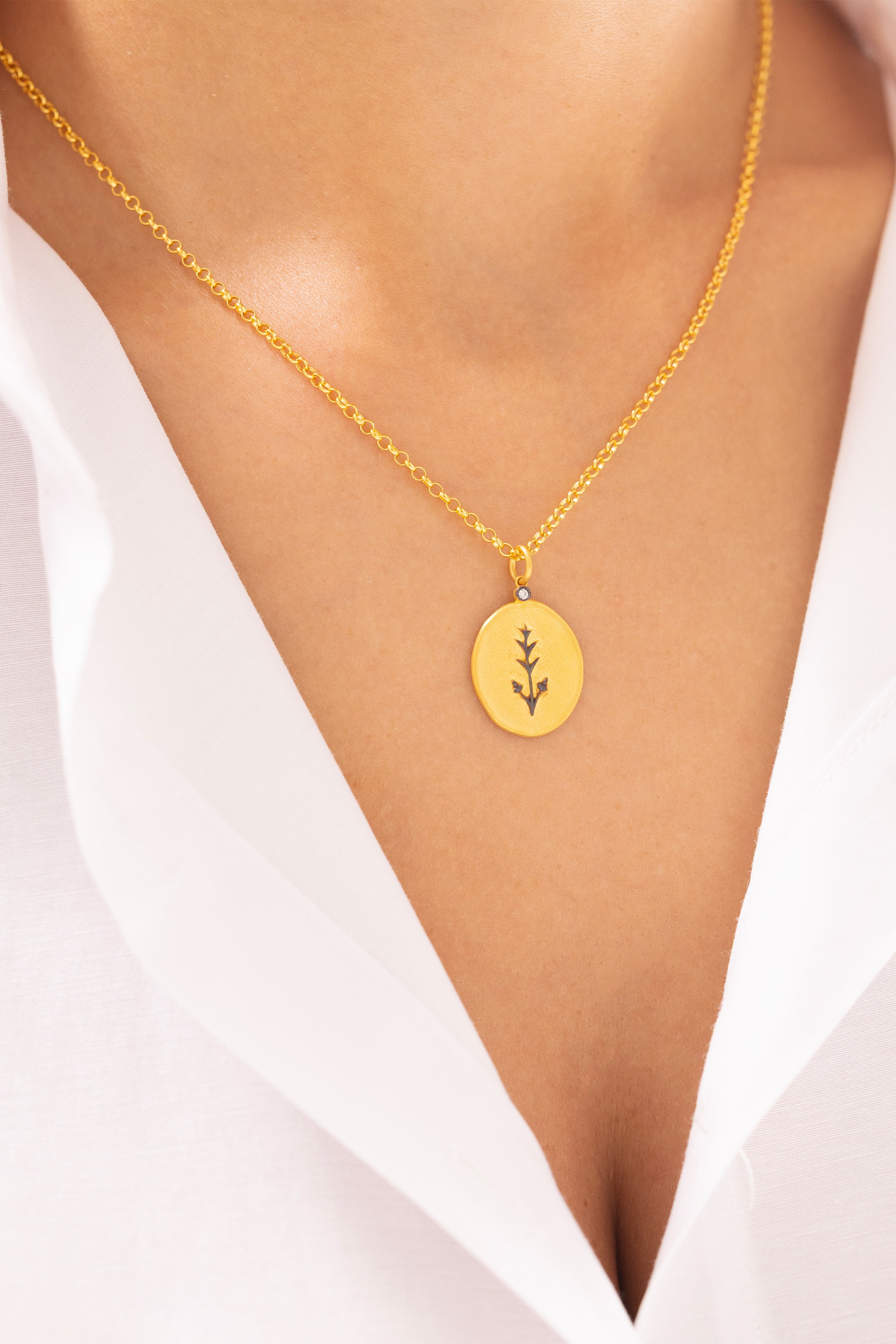 Antik Dokulu Fidan 14 Ayar Altın Kolye