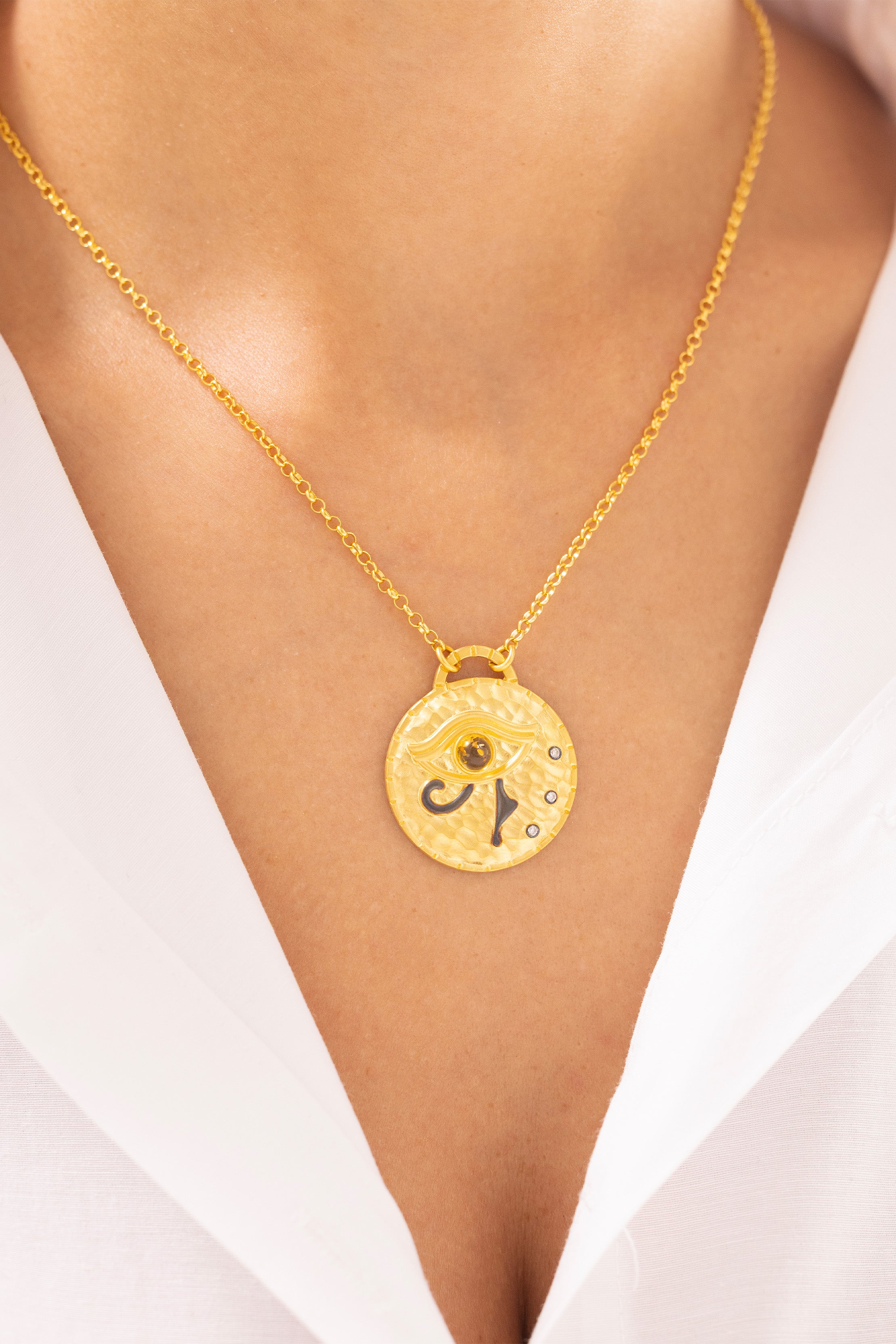 Antik Göz Figürlü 14 Ayar Altın Kolye, sadece bir mücevher değil, aynı zamanda koruyucu bir simgedir. Antik dönemlerin gizemli sembollerinden “Göz Figürü”, zarafet ve ruhsal dengeyi temsil ederken; el işçiliğiyle işlenmiş altın yüzey, tarih kokan bir dokunuş sunar.