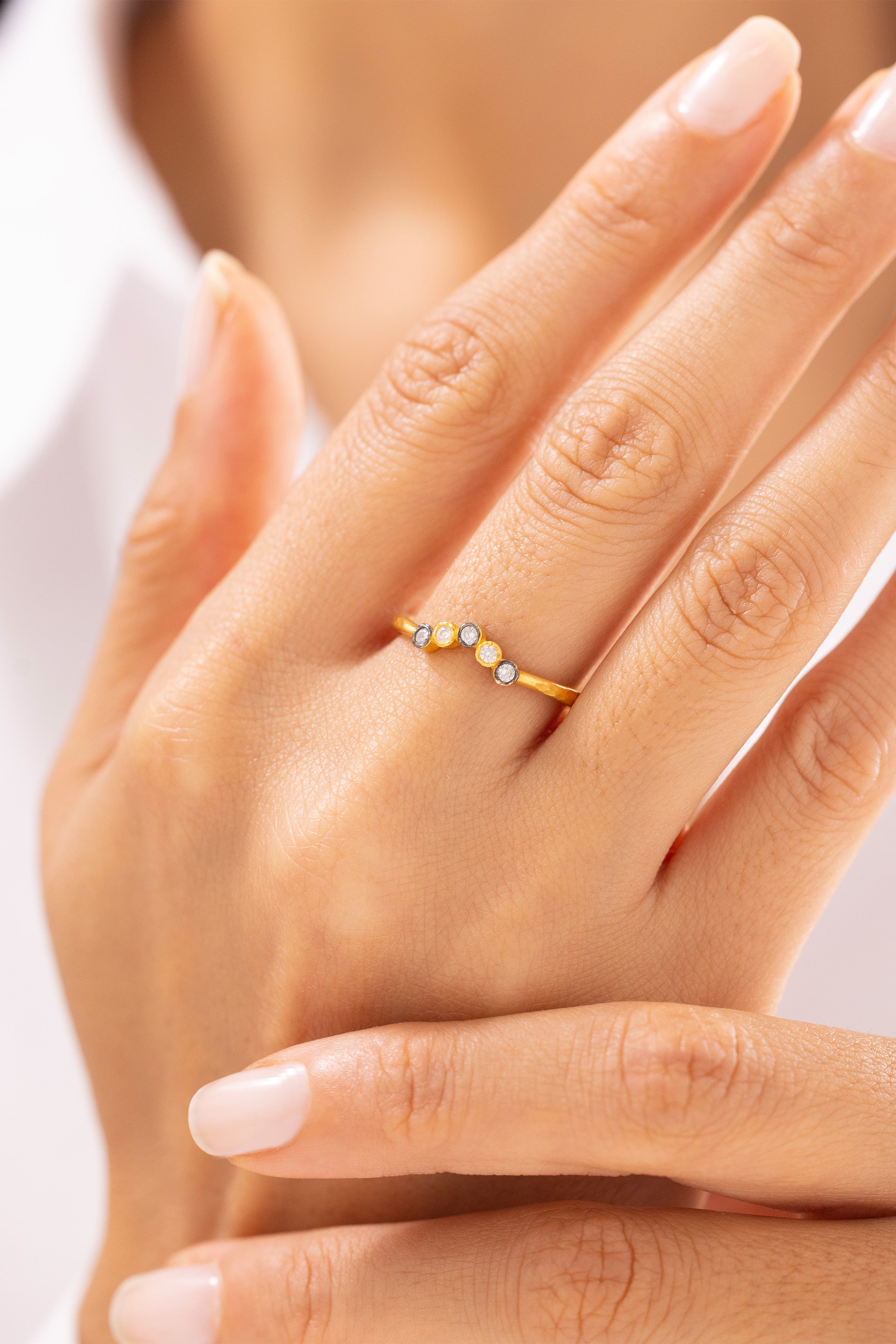 her biri özenle yerleştirilmiş beş taşıyla ışığın dansını parmağınıza taşır.