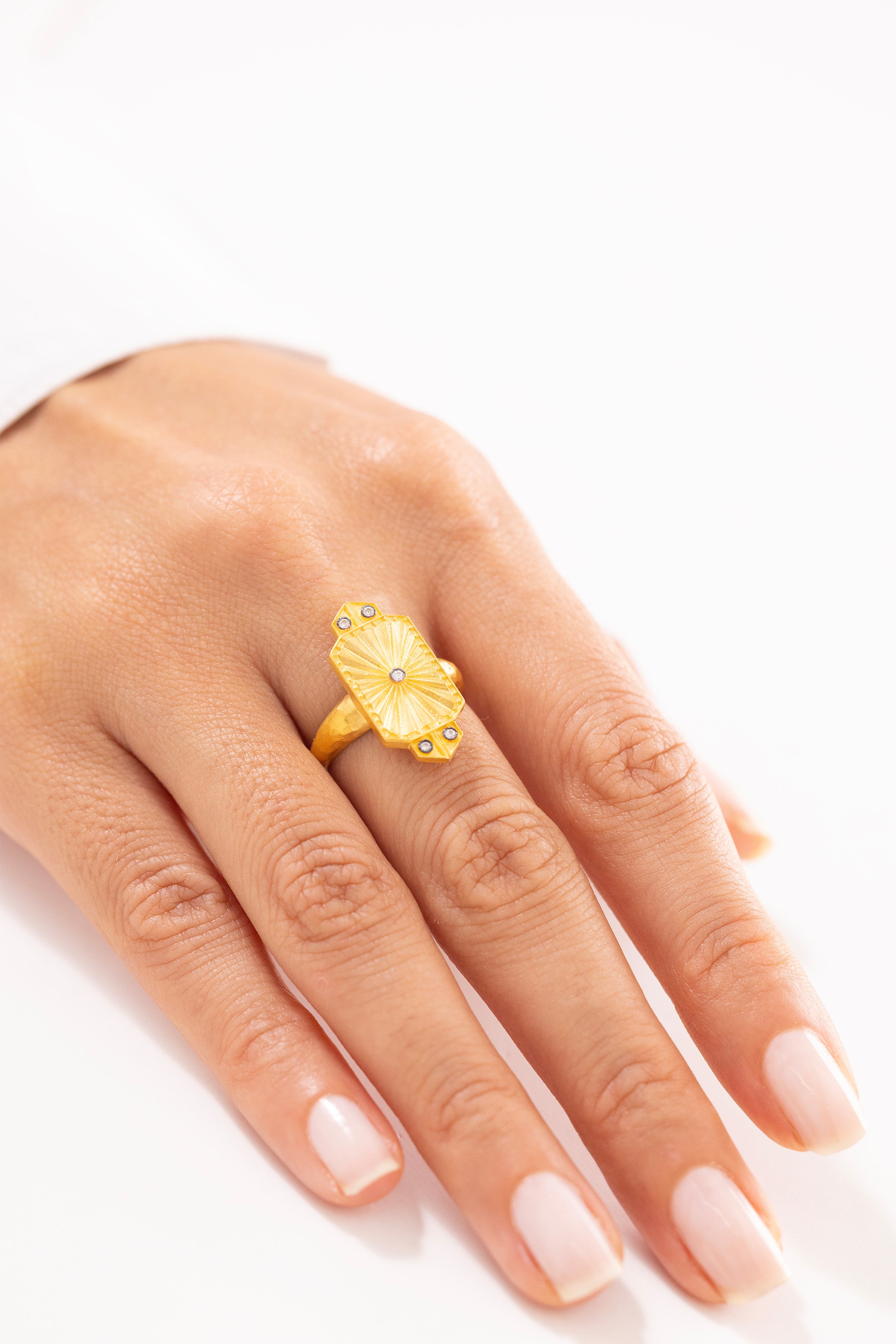 El işçiliğiyle tamamlanan yüzüğün vintage dokusu, onu hem modern hem zamansız bir parça hâline getirir.