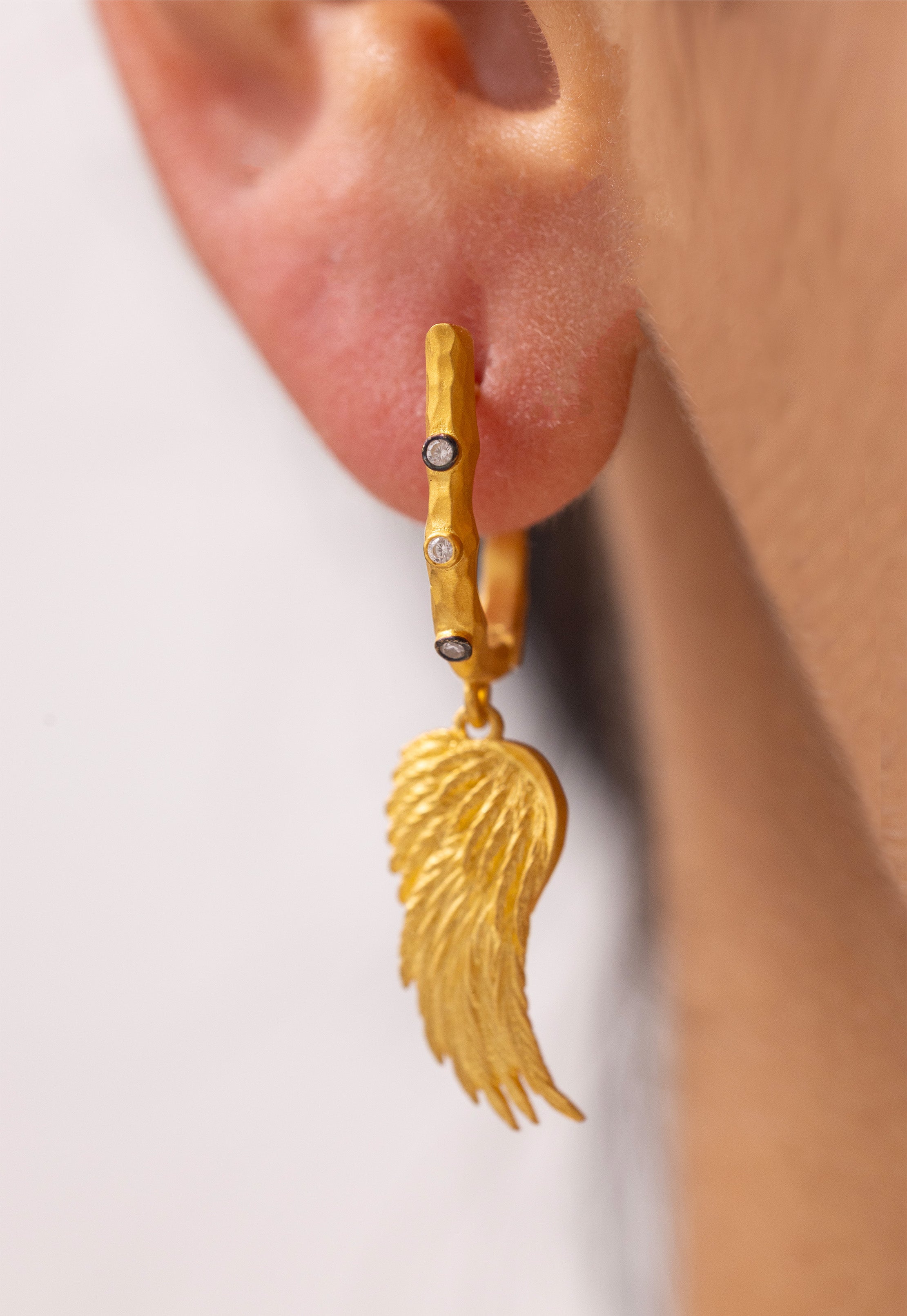 Bars Melek Kanadı Antik Dokulu 14 Ayar Altın Küpe, özgürlüğün, korumanın ve zarafetin simgesini el işçiliğiyle yeniden şekillendiriyor.