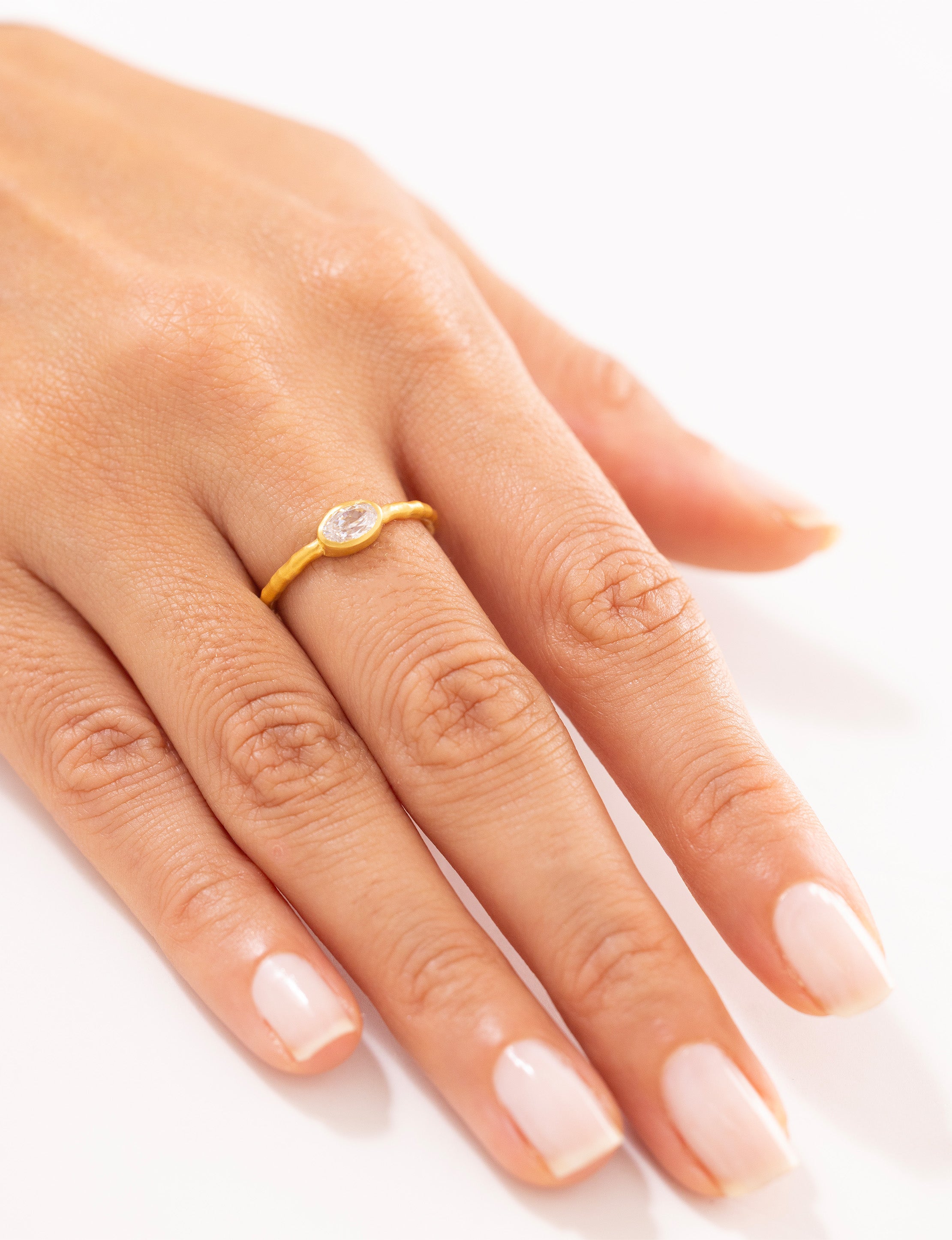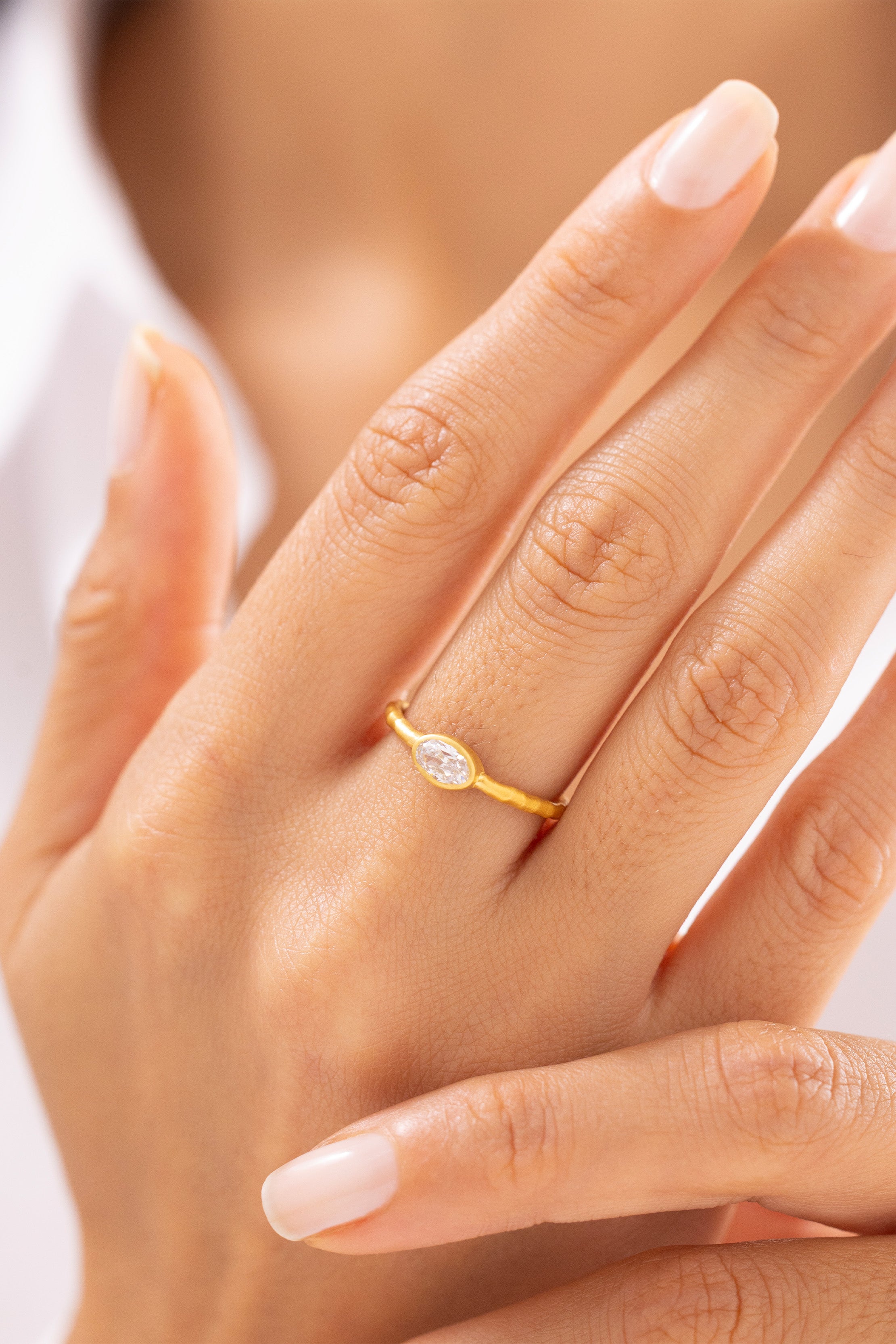 Antik dokulu yüzeyin üzerinde parlayan oval taş, klasik ve modern çizgiyi mükemmel bir dengede buluşturuyor.
