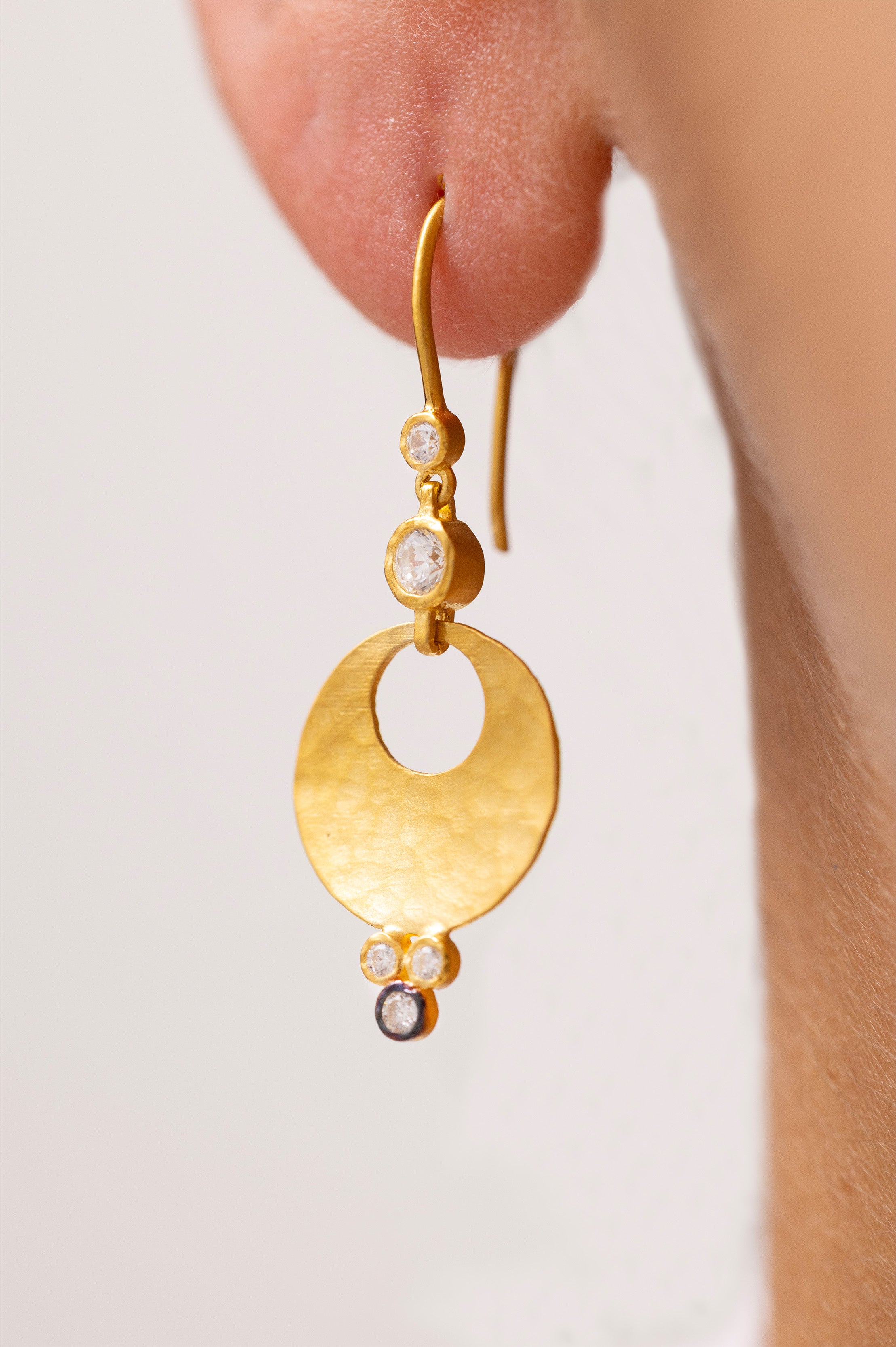Minimal zarafet ile antik ruhu aynı anda taşıyan bu küpe, Bars koleksiyonunun imza parçalarındandır.