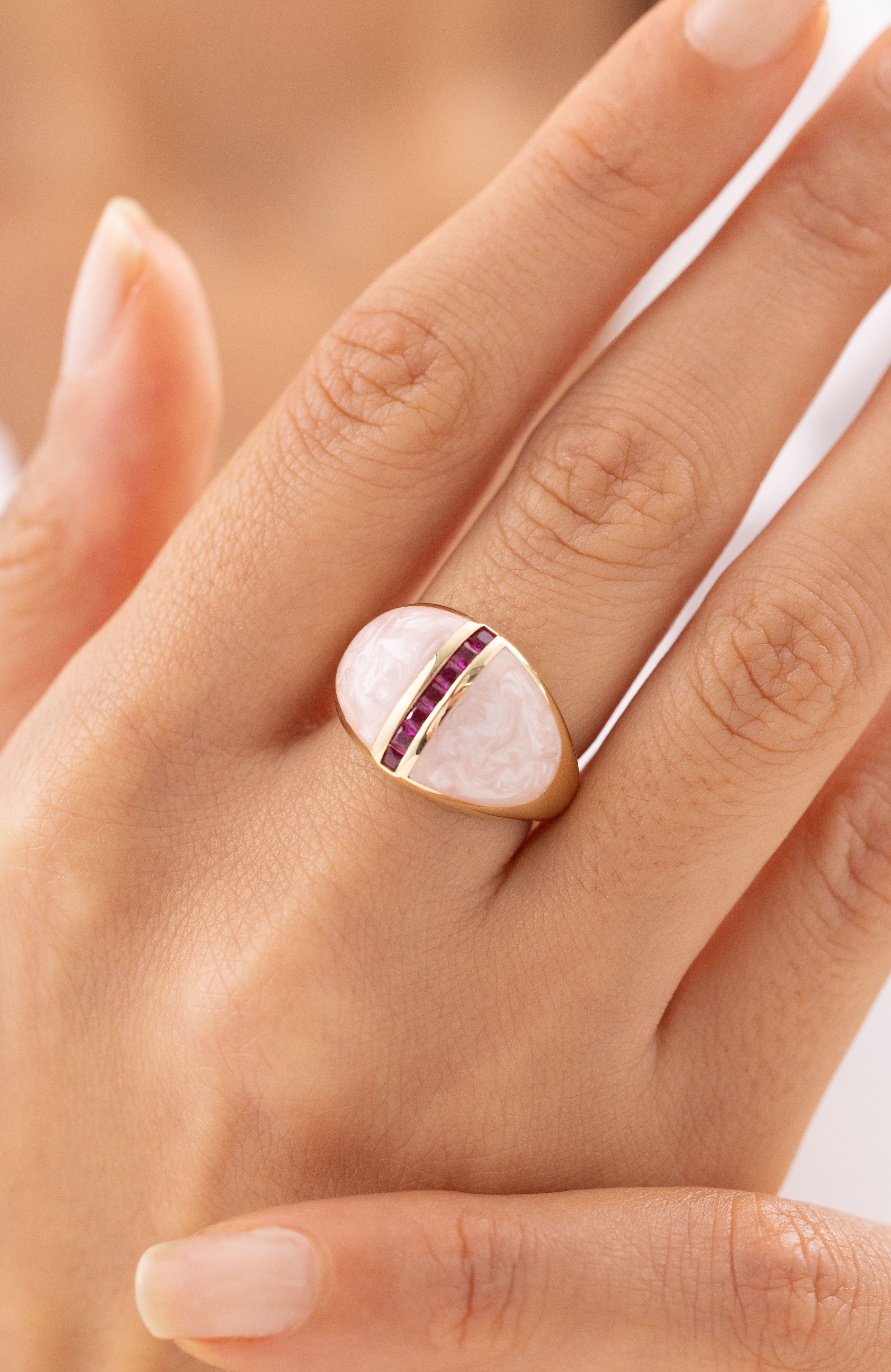 Cetaş Bombeli Sedef Üzeri Ruby Taşlı 14 Ayar Altın Yüzük