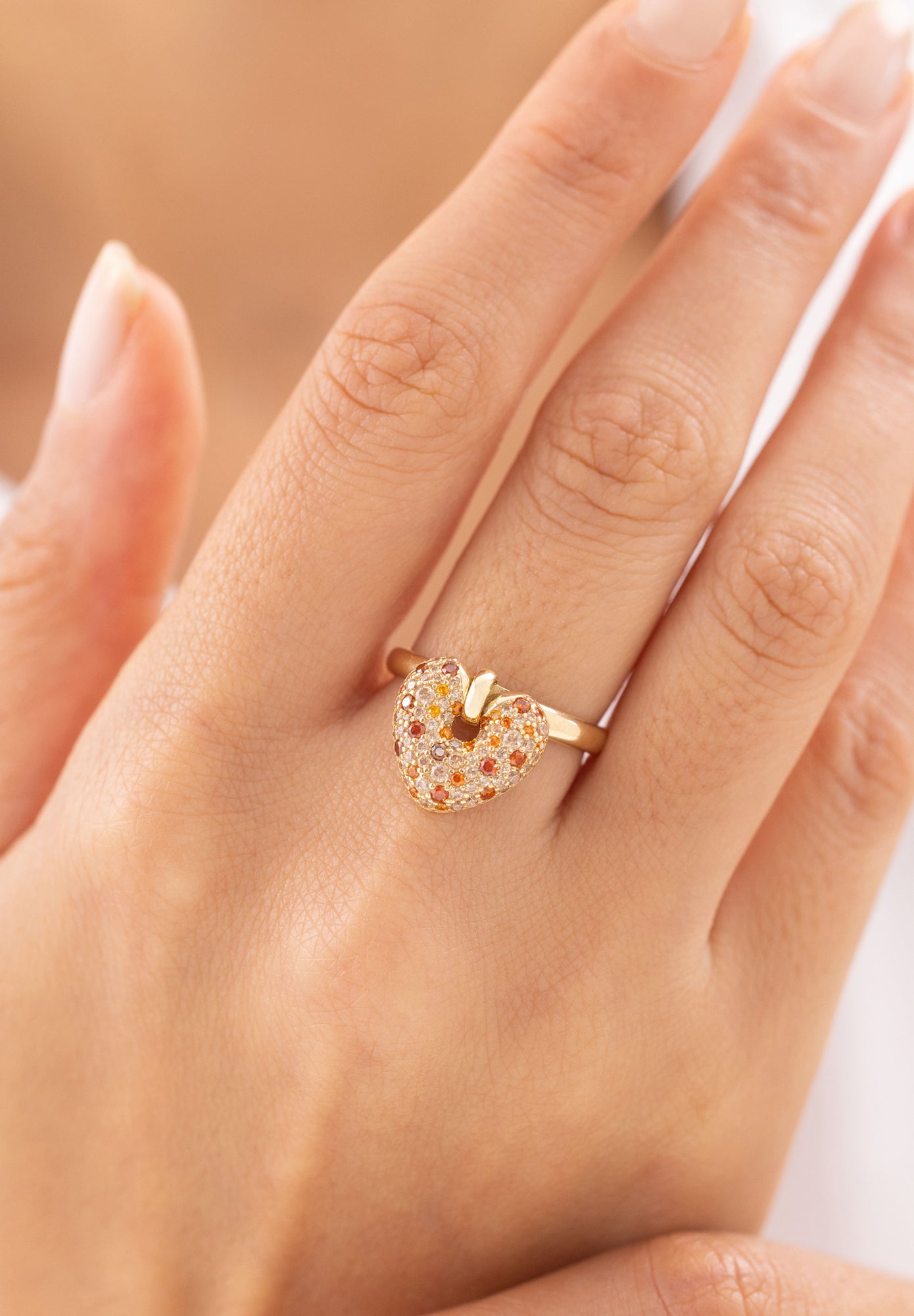 Cetaş Renkli Taşlı Kalp 14 Ayar Altın Yüzük
