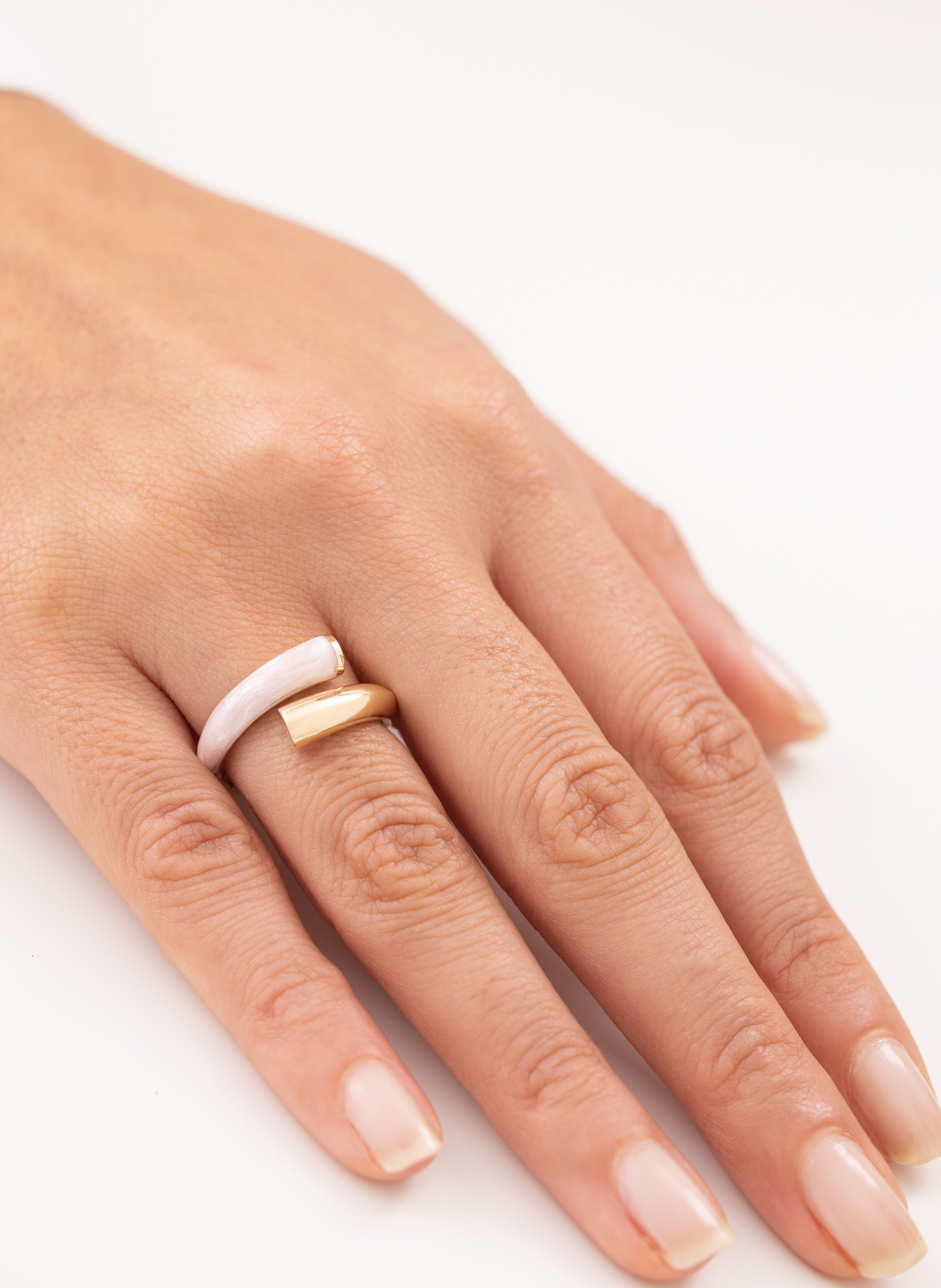 Cetaş Sedefli Açık Form 14 Ayar Altın Yüzük