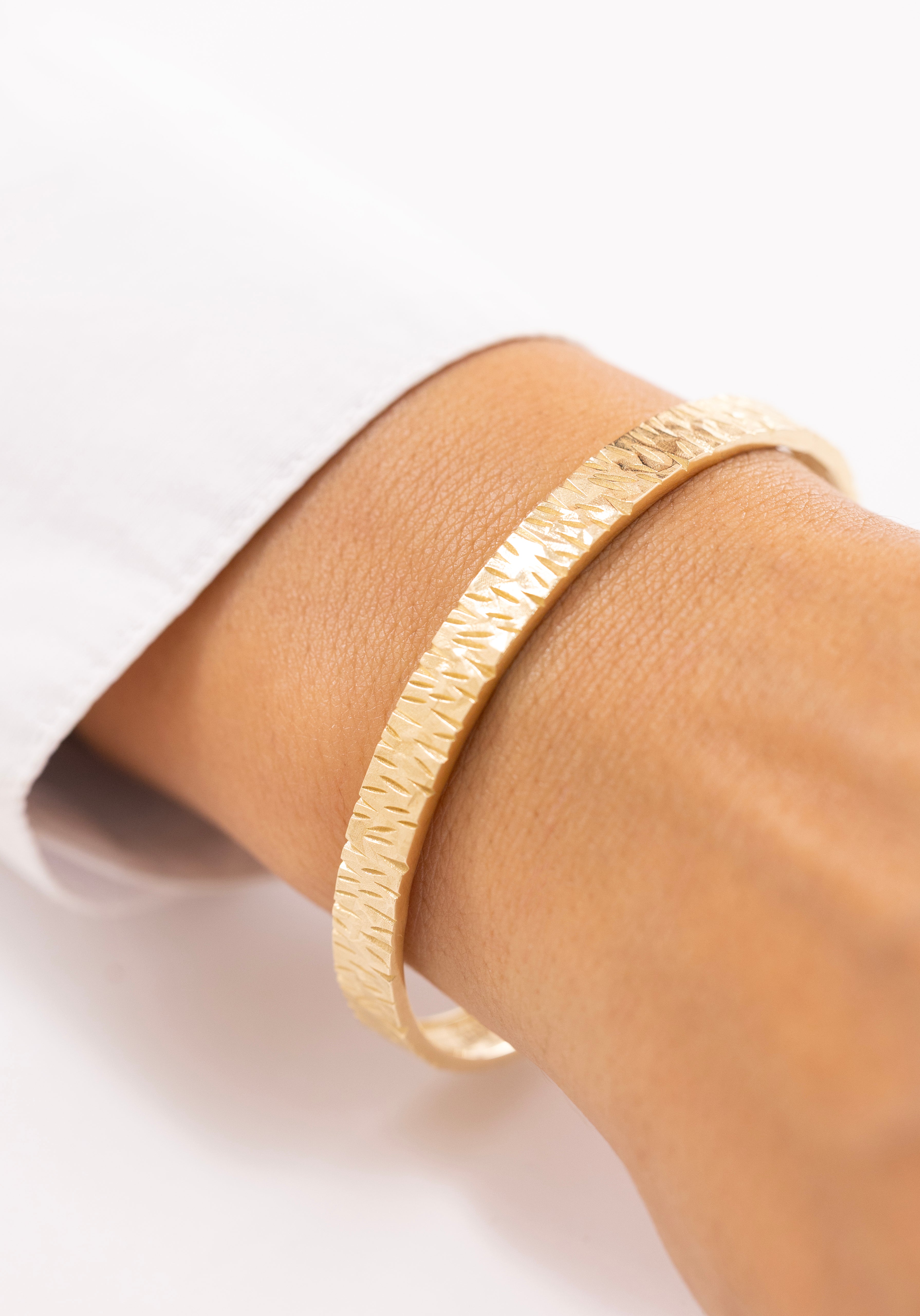 Altının sıcak tonlarıyla, yağışını sürdürmekten çekinmeyenlerin hikayesi.Dune Mirage 14 Ayar Altın Kelepçenin boyutuna göre seçilip