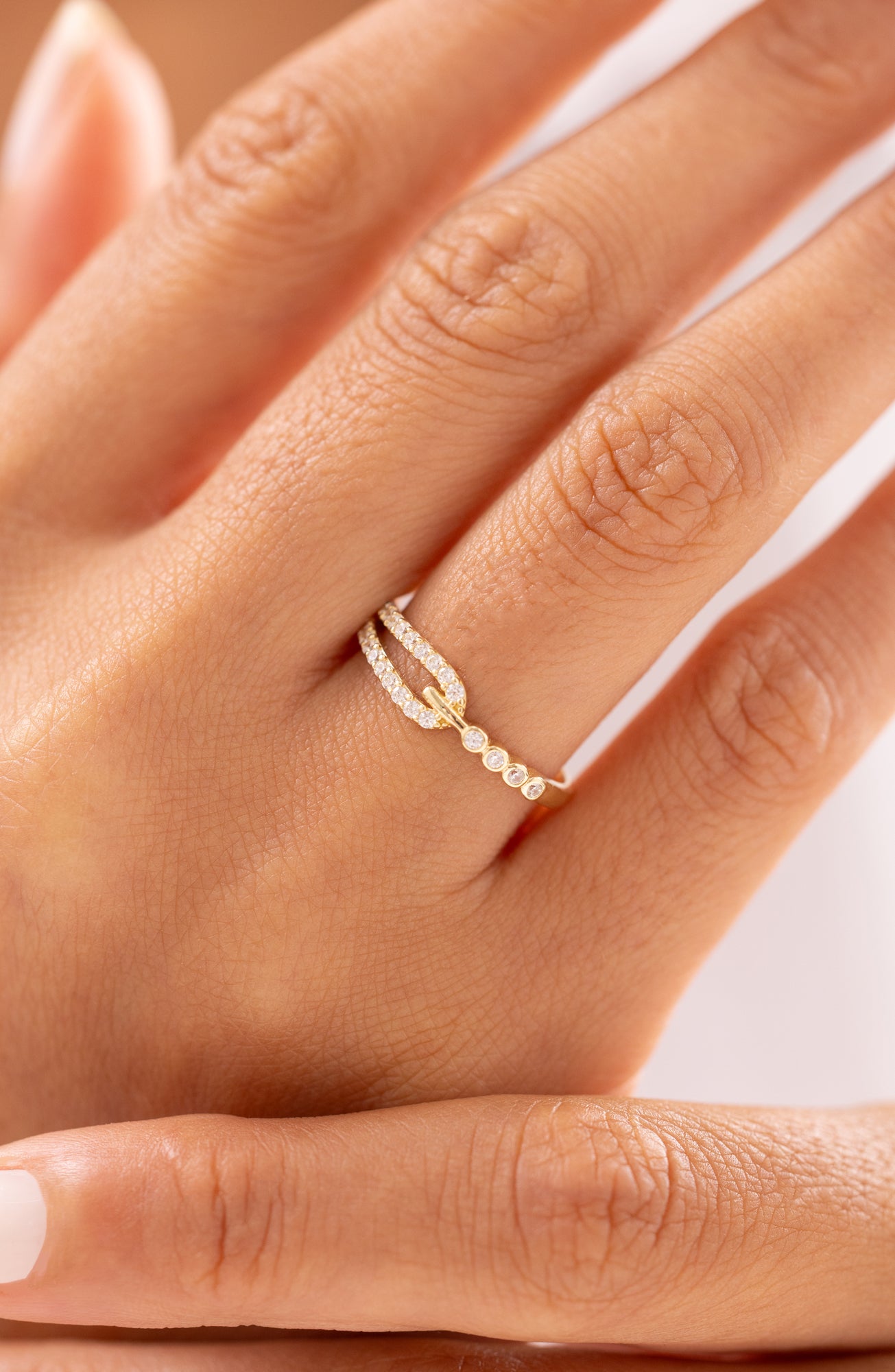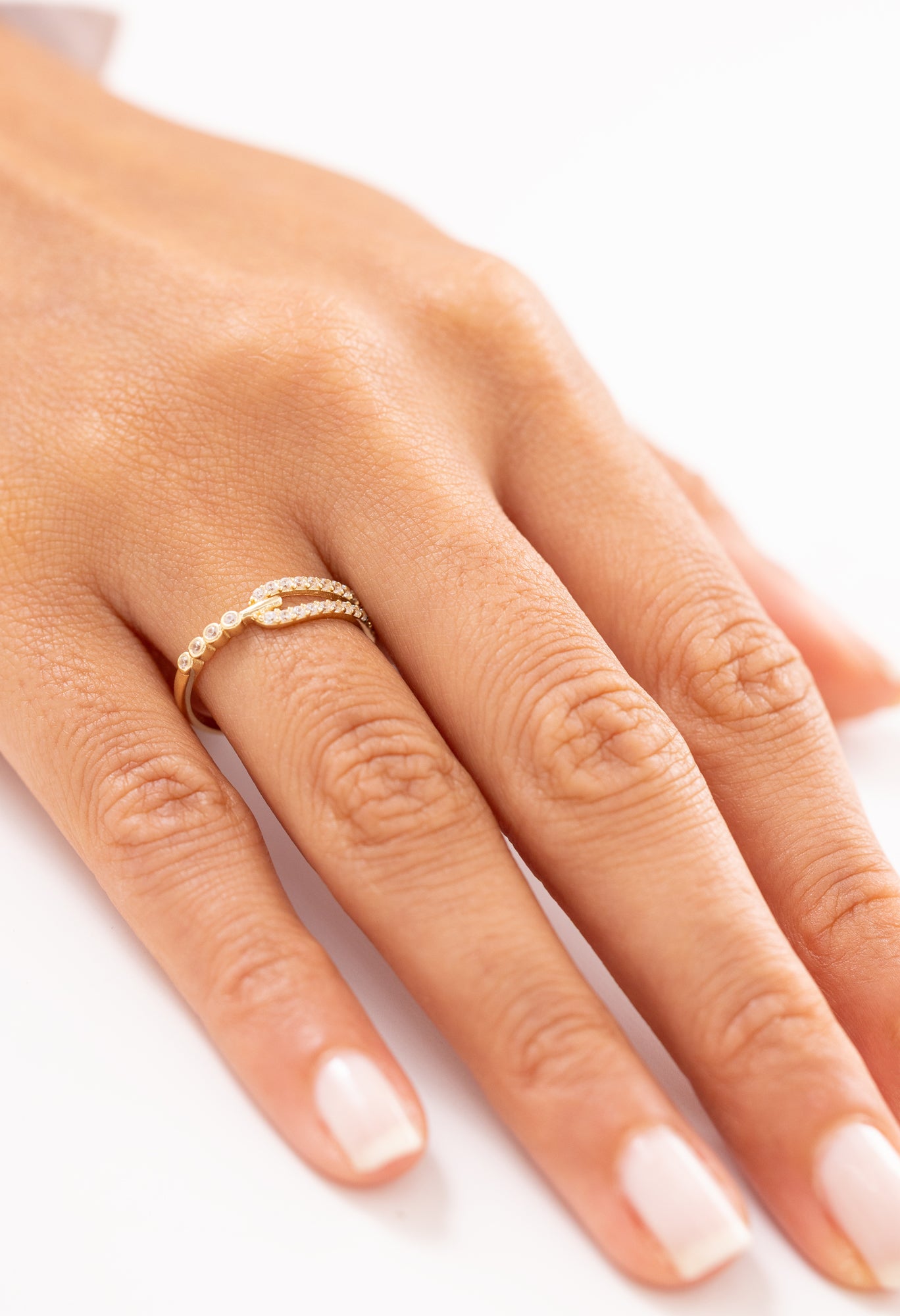 Elegan Çift Çizgi Taşlı 14 Ayar Altın Yüzük
