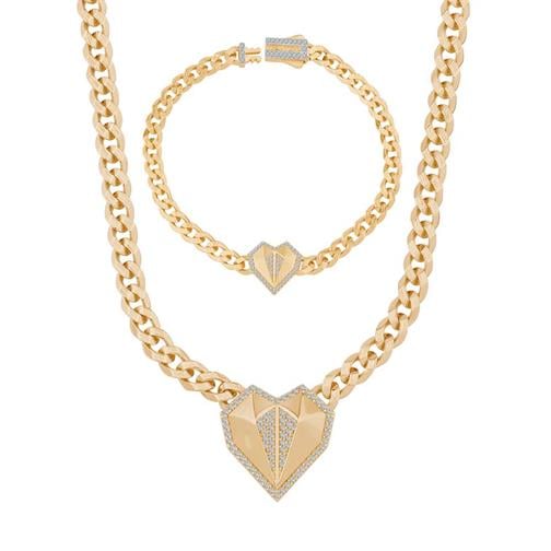 Ema Taşlı Kalp Gurmet 14 Ayar Altın Set