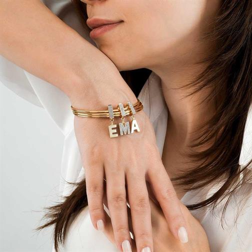Ema Taşlı Sallantılı Harf 9Mm 14 Ayar Altın Bileklik Charm