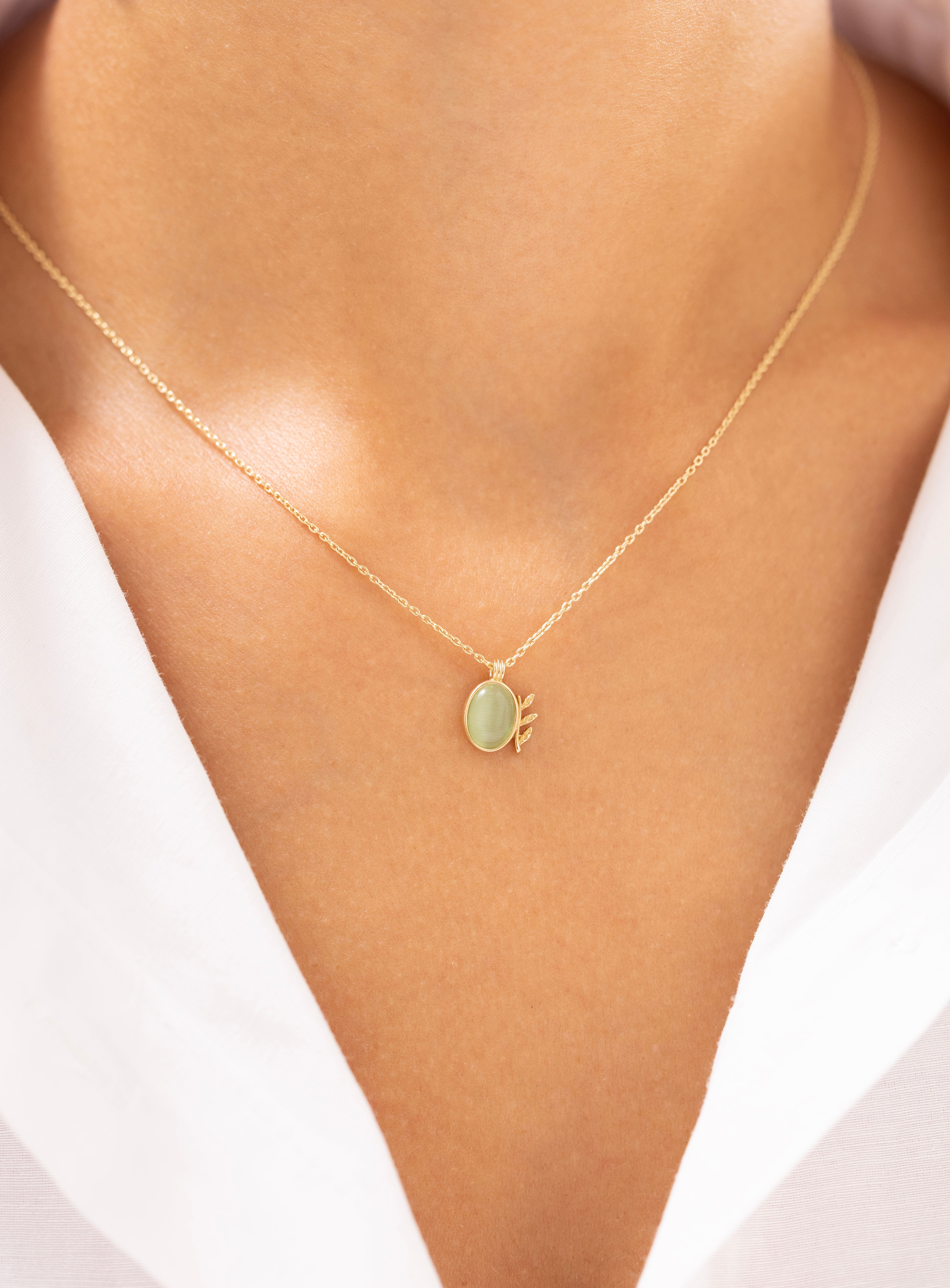 altının sıcak ışıltısıysa, toprağın kalbinden yükselen enerjiyi hatırlatır.Bu kolye, Gaia’nın – yani Toprak Ana’nın – koruyucu kollarını temsil eder.