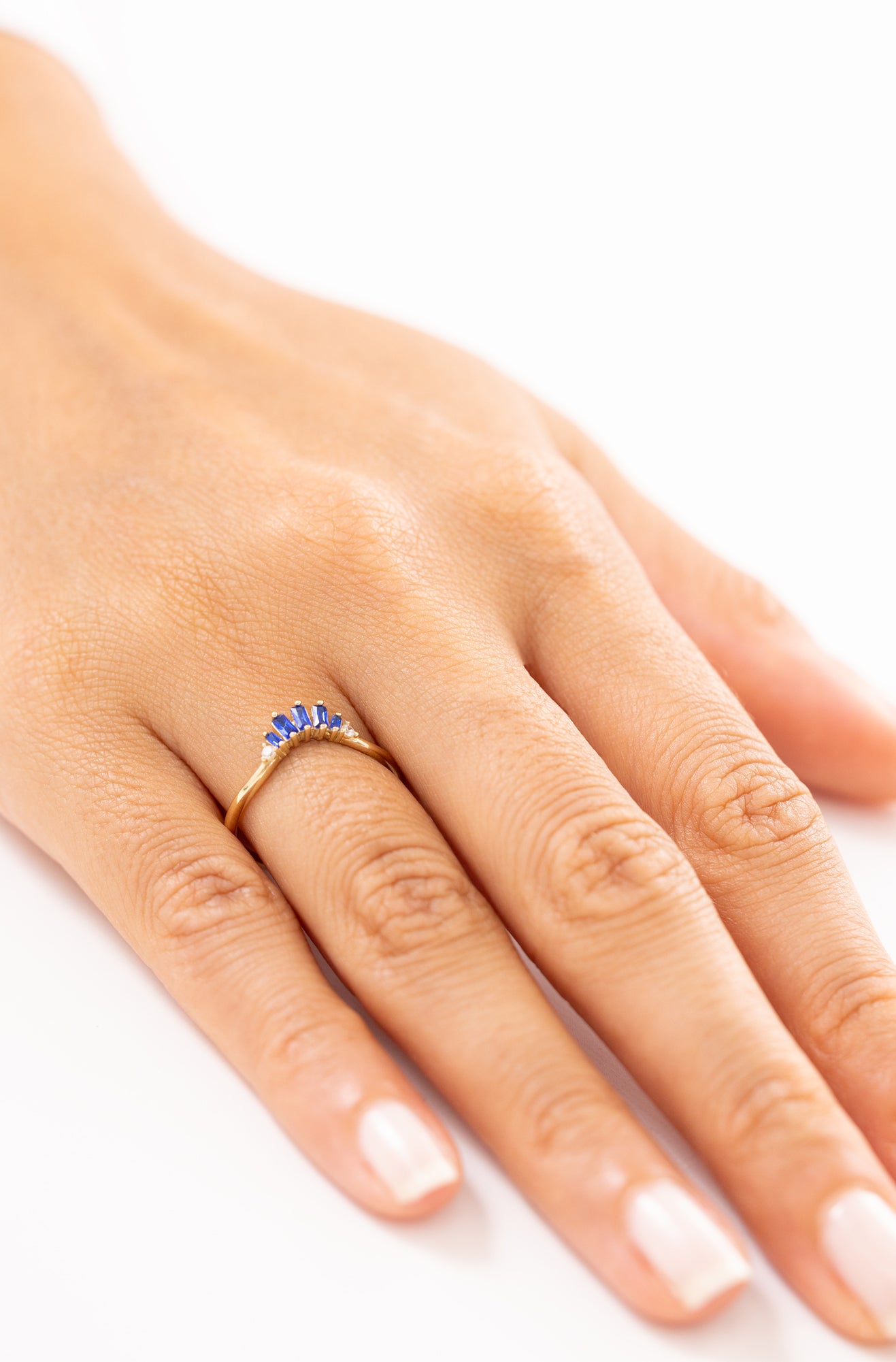 Işıltılı Mavi Baget Taşlı 14 Ayar Altın Yüzük