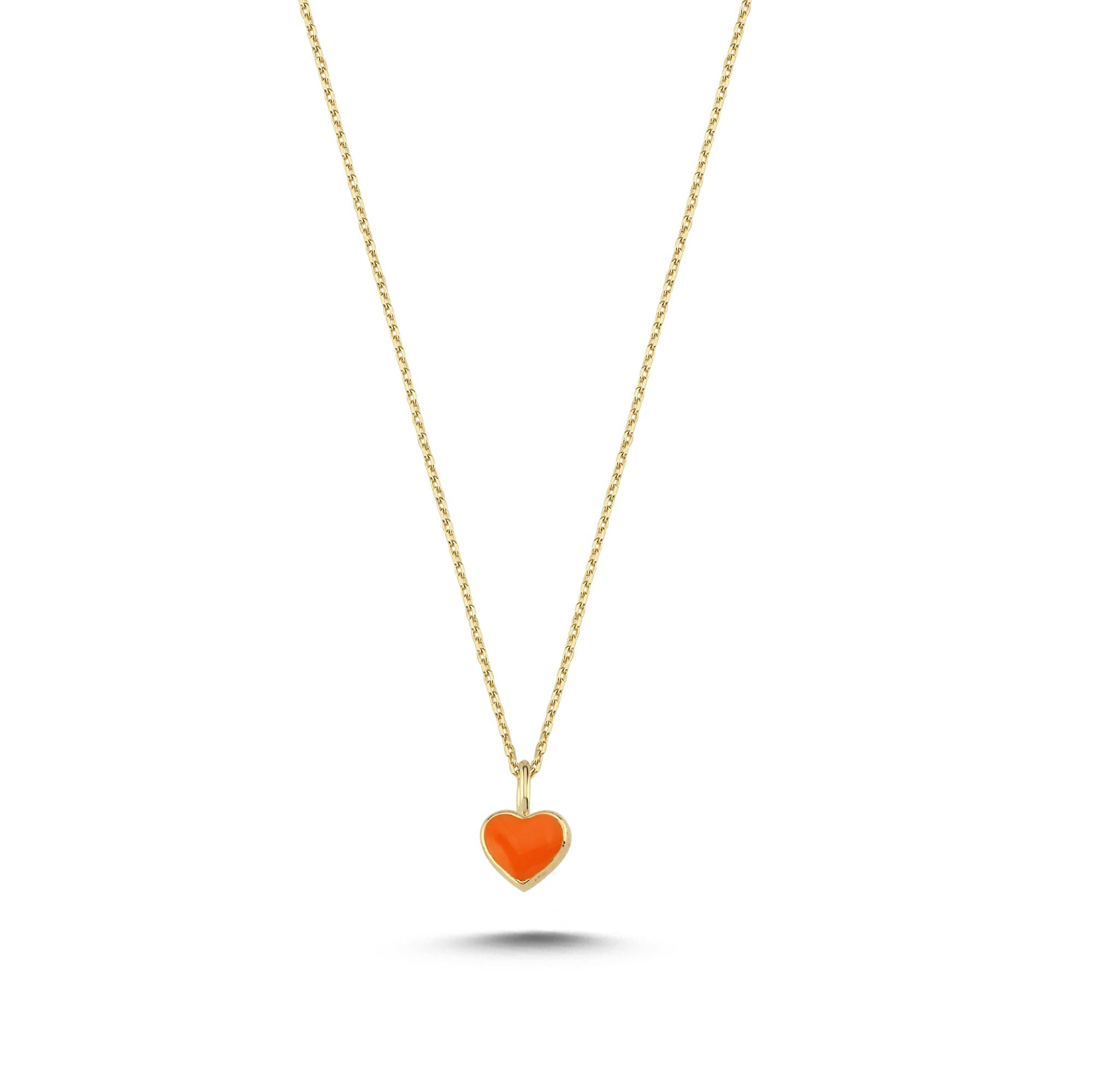 Kırmızı Kalp Mineli Minimal 14 Ayar Altın Kolye