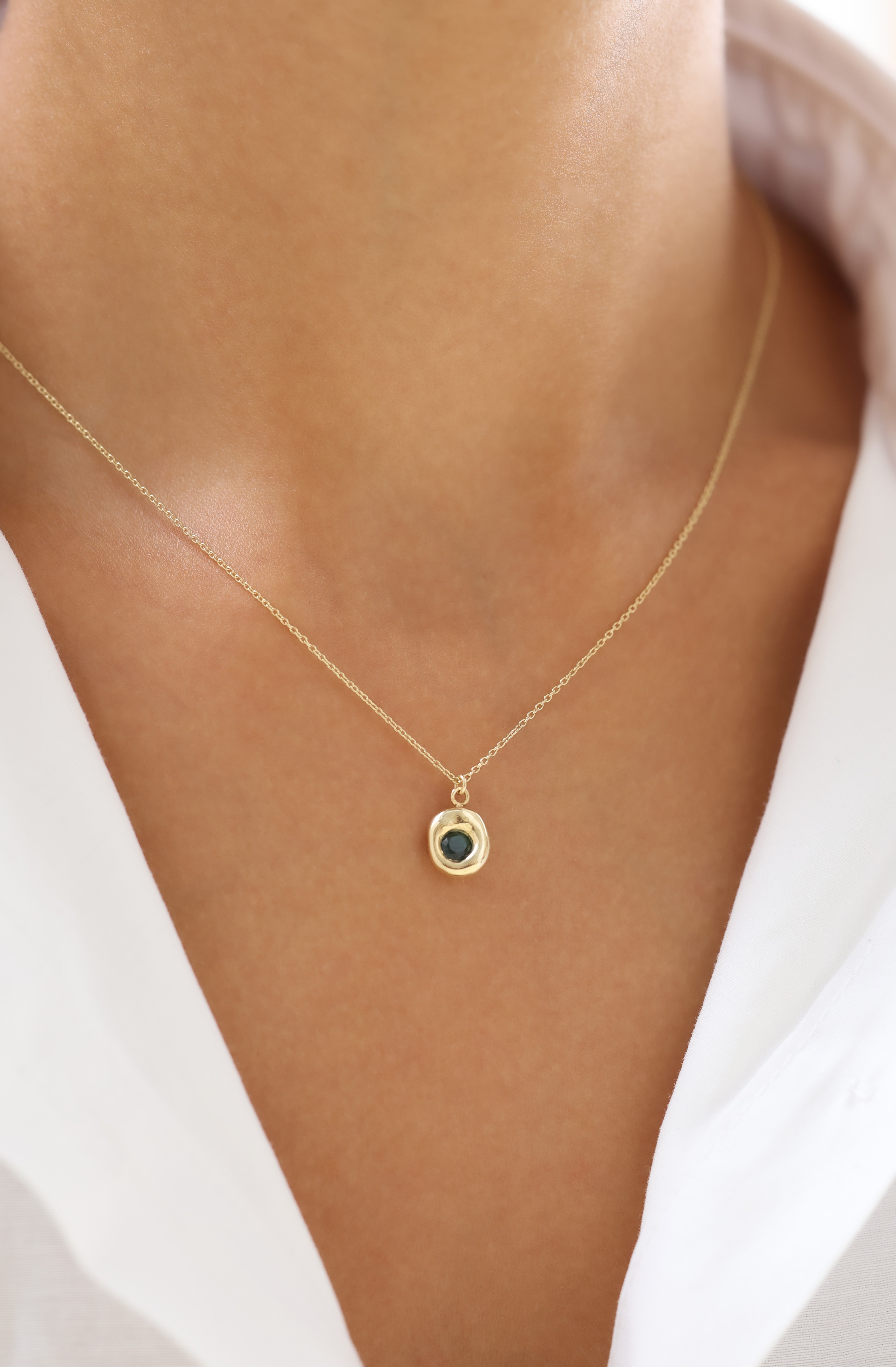 Koyu Taşlı Organik Form 14 Ayar Altın Kolye, doğanın doğal akışından ilham alan yumuşak hatlarıyla dikkat çekiyor.