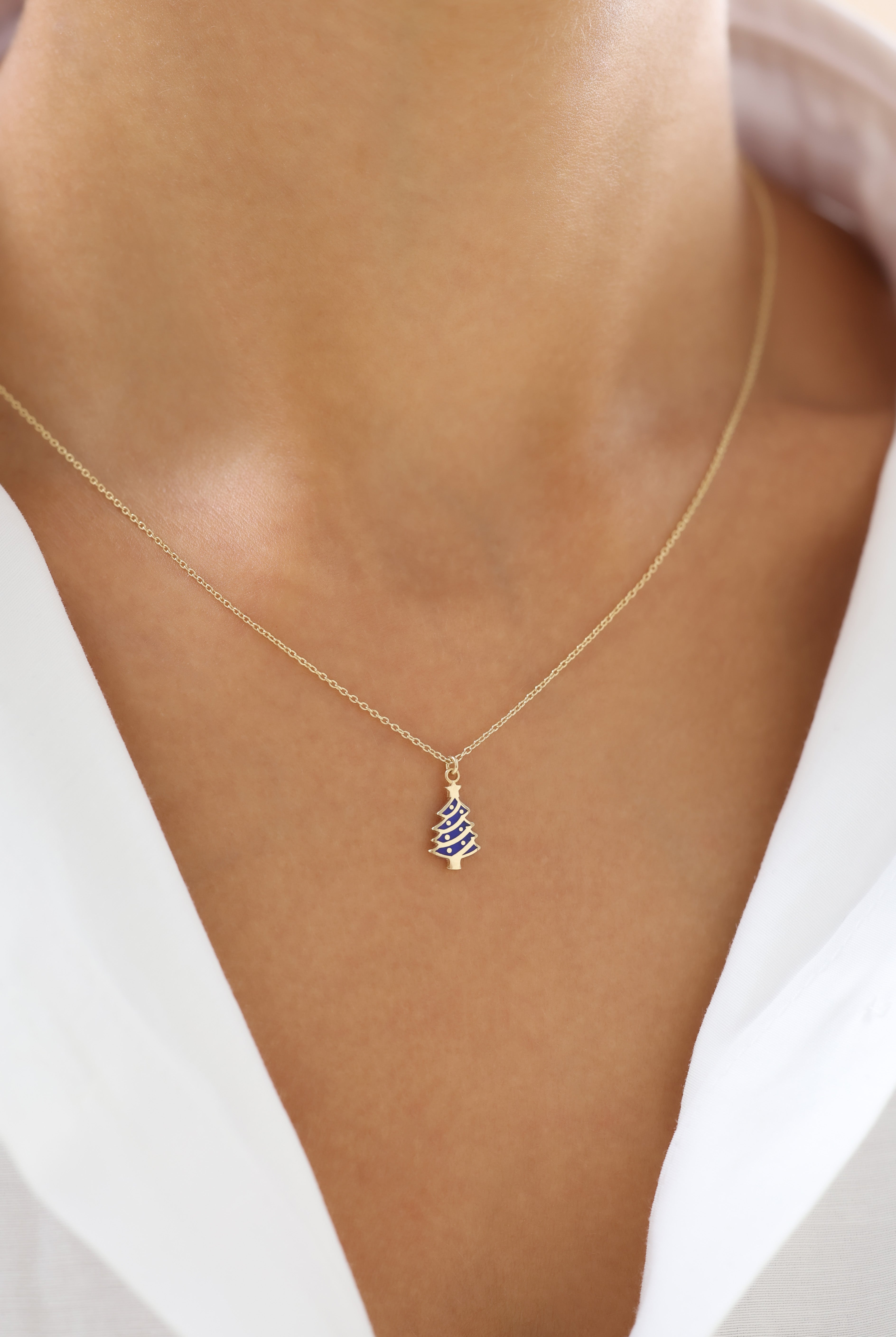 Kış gecelerinin derin mavisini ve çam ağacının doğallığını aynı formda buluşturan bu kolye, umut ve yenilenmenin sembolüdür.