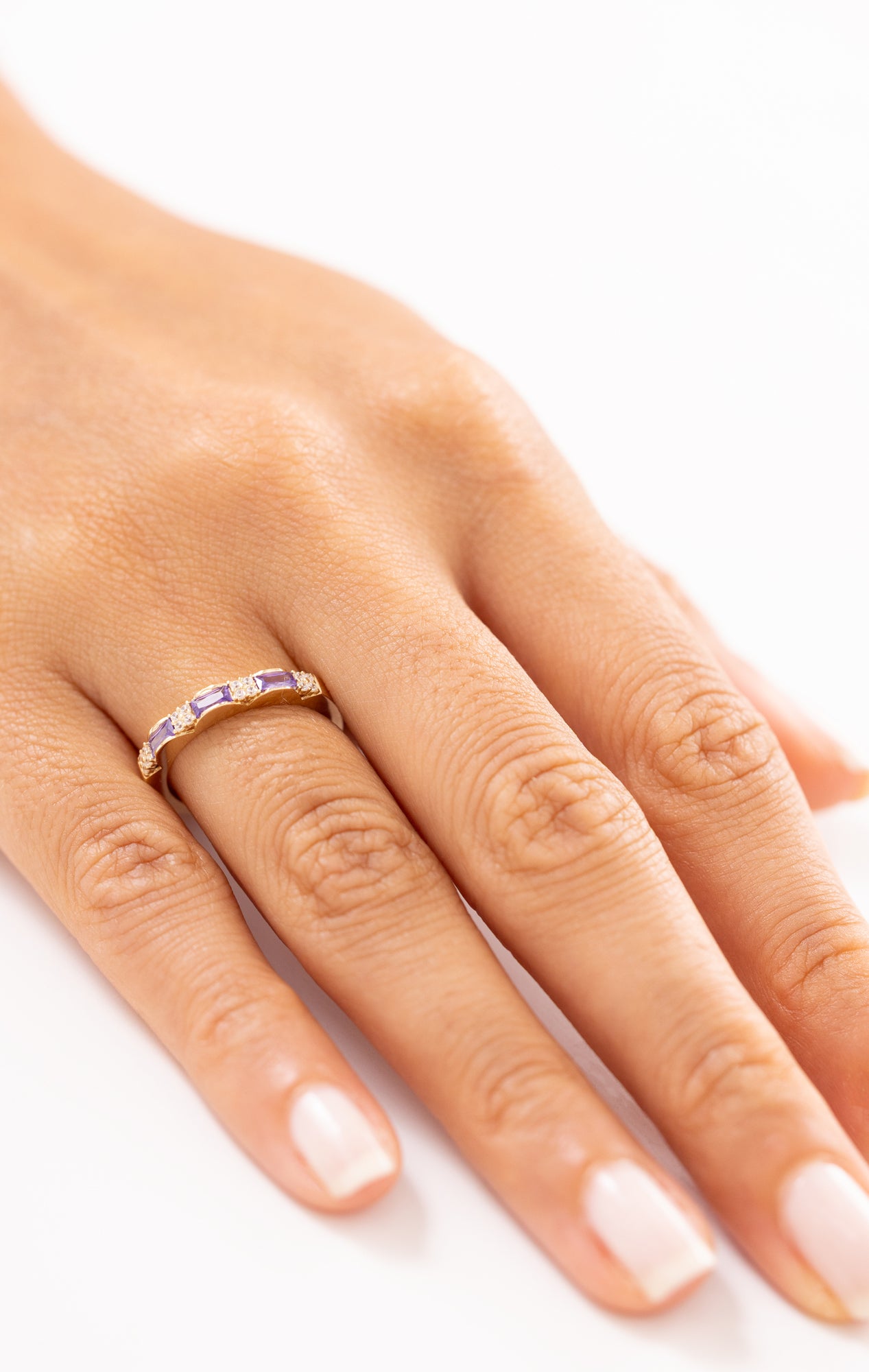 Lacivert Mineli ve Tektaş Efektli 14 Ayar Altın Yüzük
