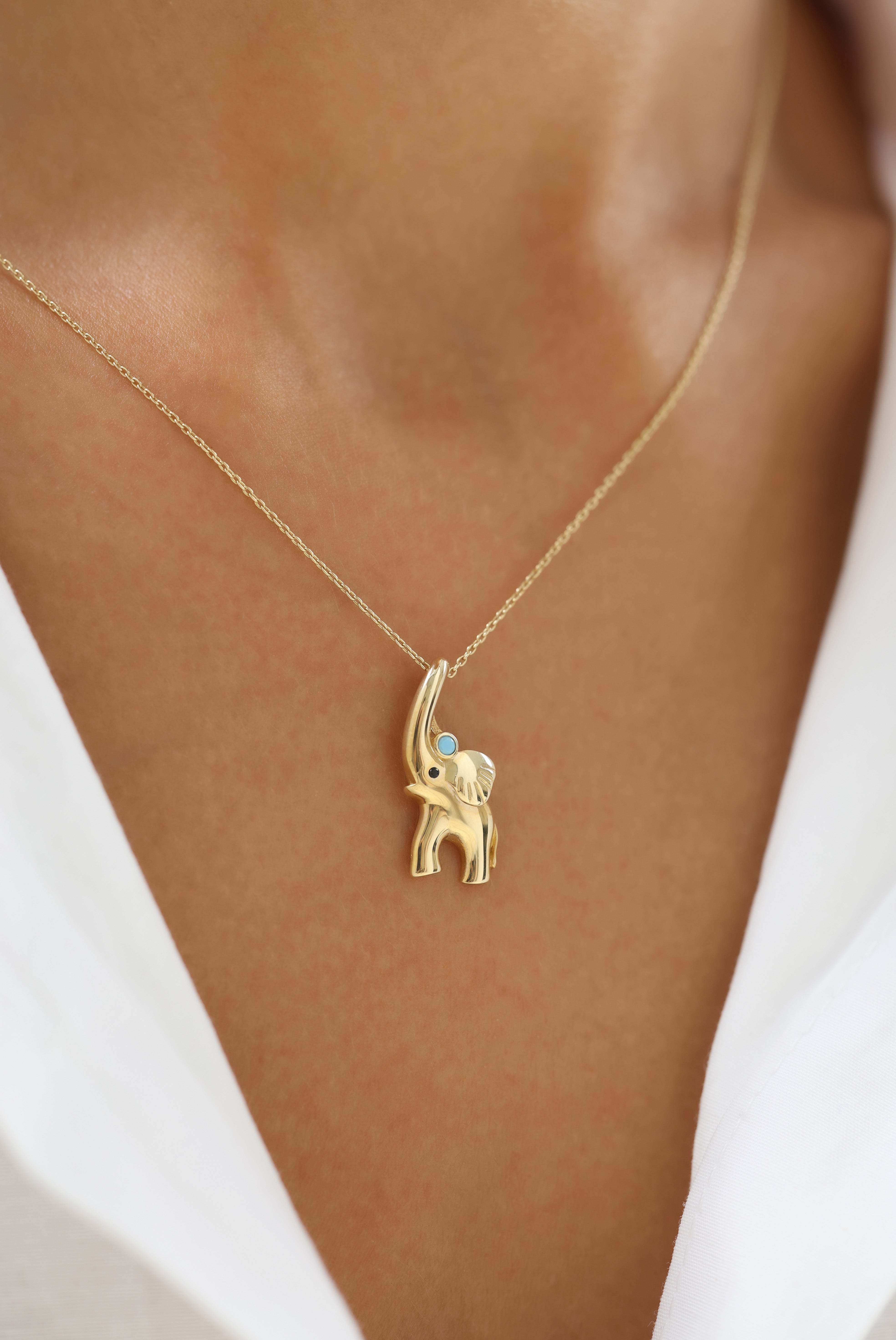 Mavi Taşlı Fil 14 Ayar Altın Kolye