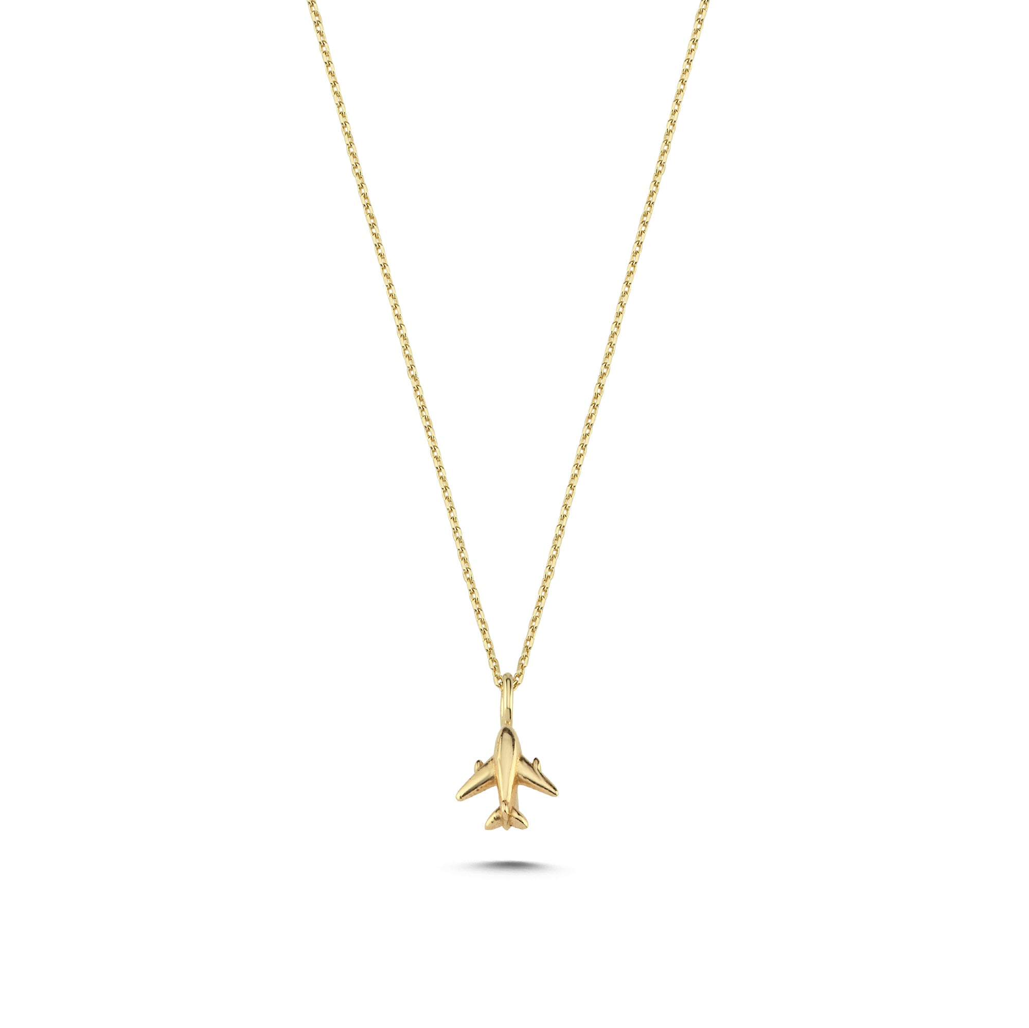 Minimal Uçak 14 Ayar Altın Kolye, gökyüzüne dokunan bir hayalin zarif ifadesi.