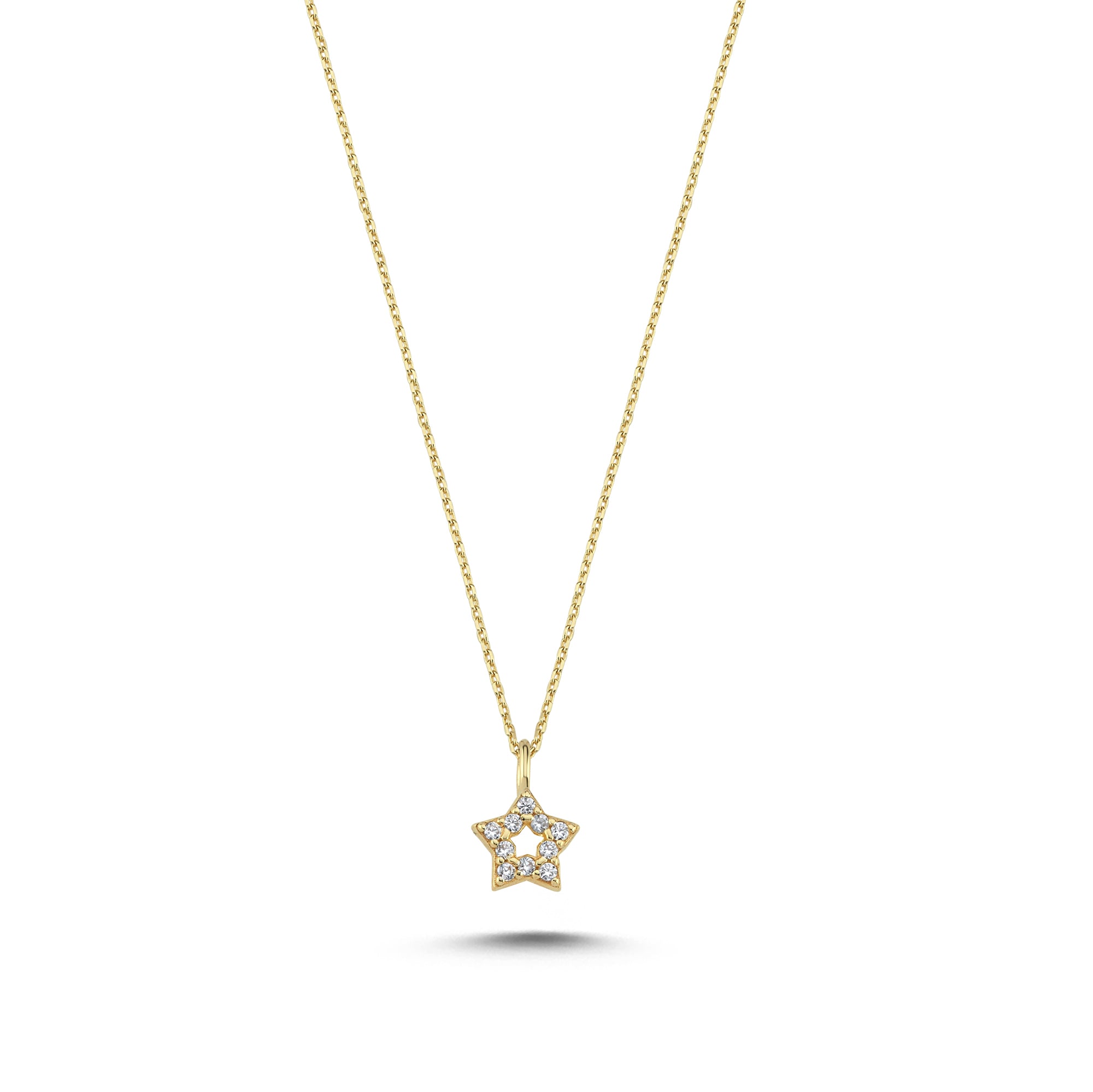 Minimal tasarımı ve zarif taş detaylarıyla bu kolye, her anınıza ışık katmak için tasarlandı. İlhamını gece göğünün huzur veren sadeliğinden alan yıldız figürü, dileklerinizi hatırlatır; zarafetinizi tamamlar.