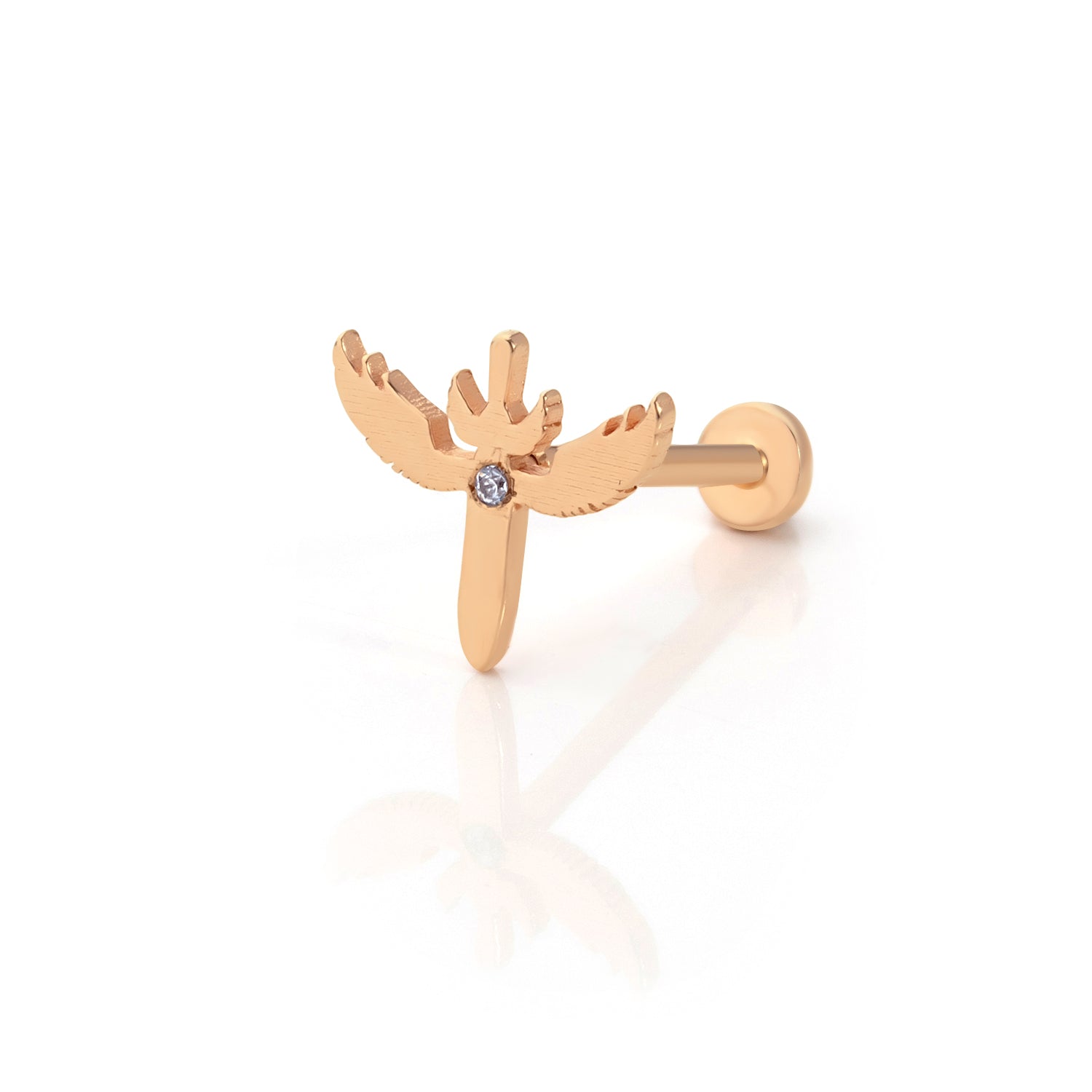 Şık Kanatlı Kılıç 14 Ayar Altın Piercing