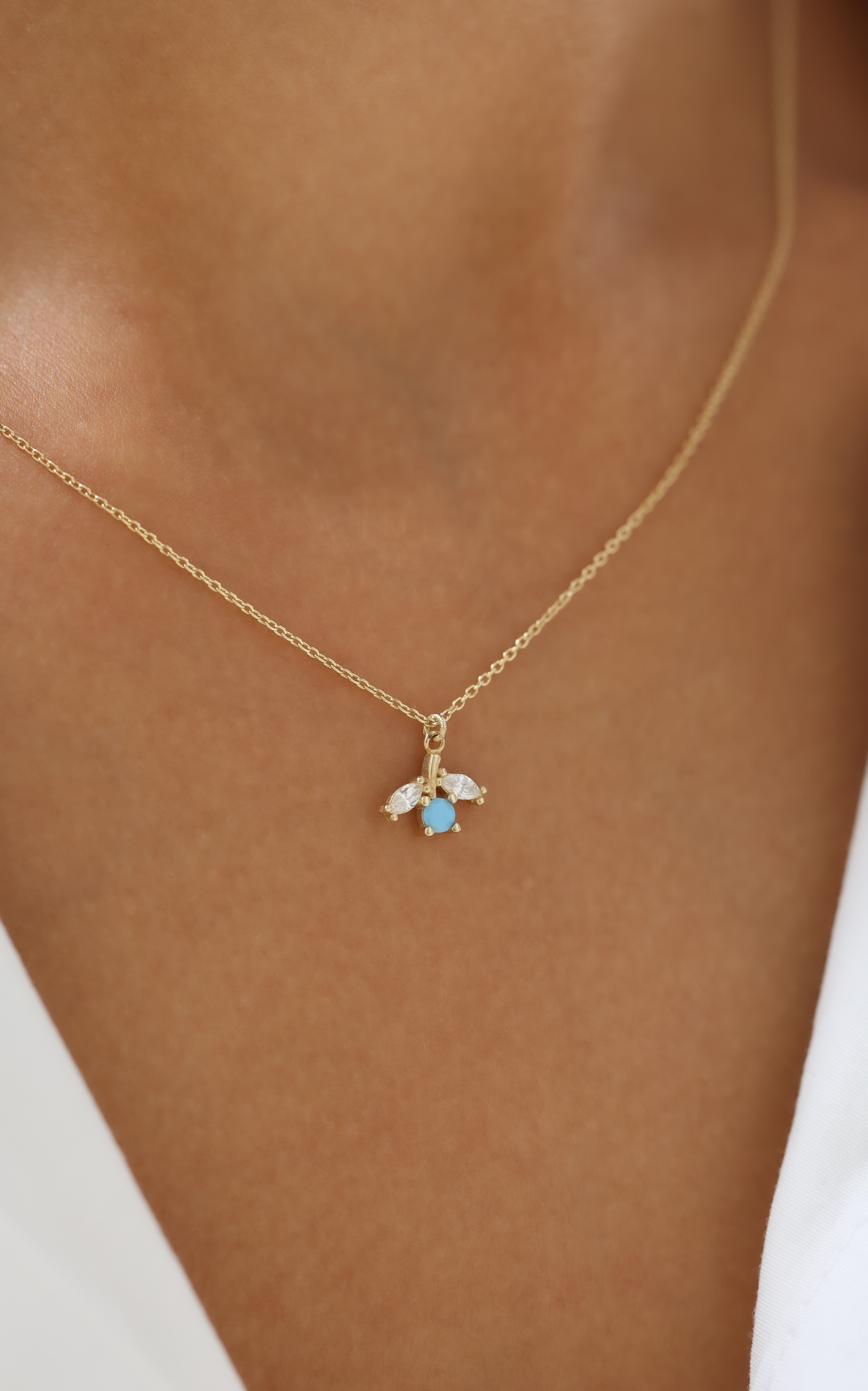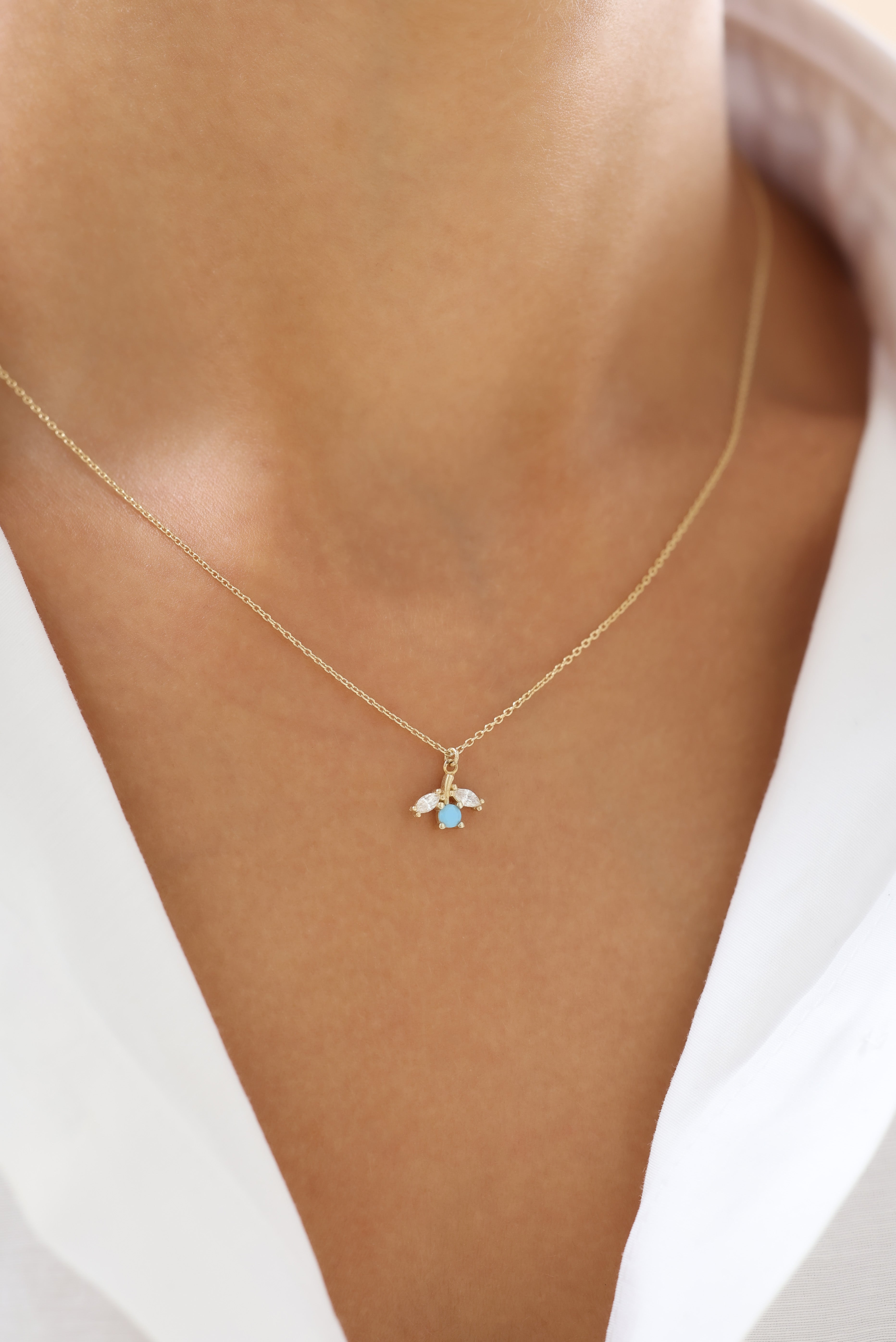 Şık ve Zarif Turkuaz Taşlı 14 Ayar Altın Kolye, minimal formuyla sade ama etkileyici bir duruş sergiliyor.