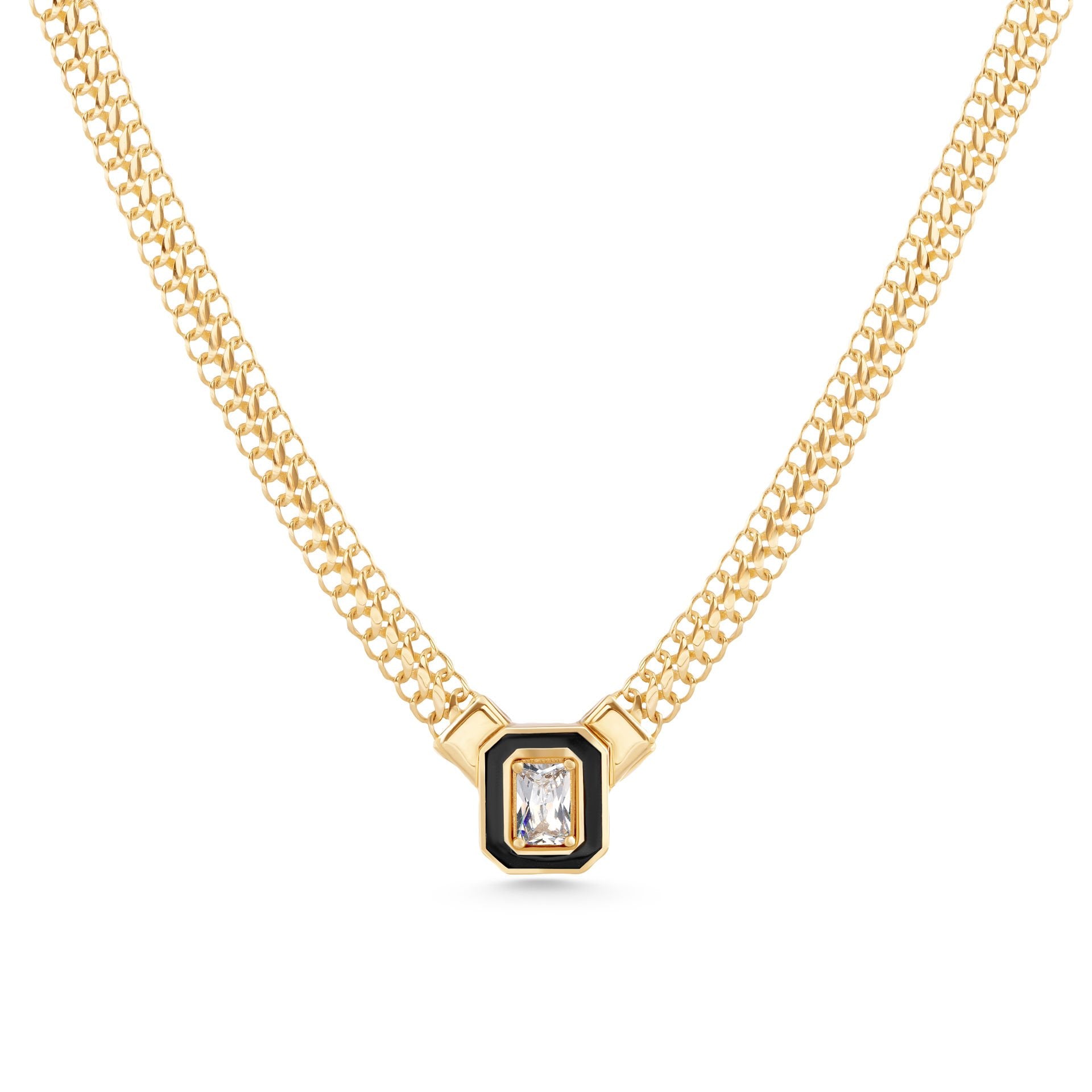 İki sıralı zincir yapısı, kolyeye hem lüks bir duruş hem de karakteristik bir ağırlık kazandırır.