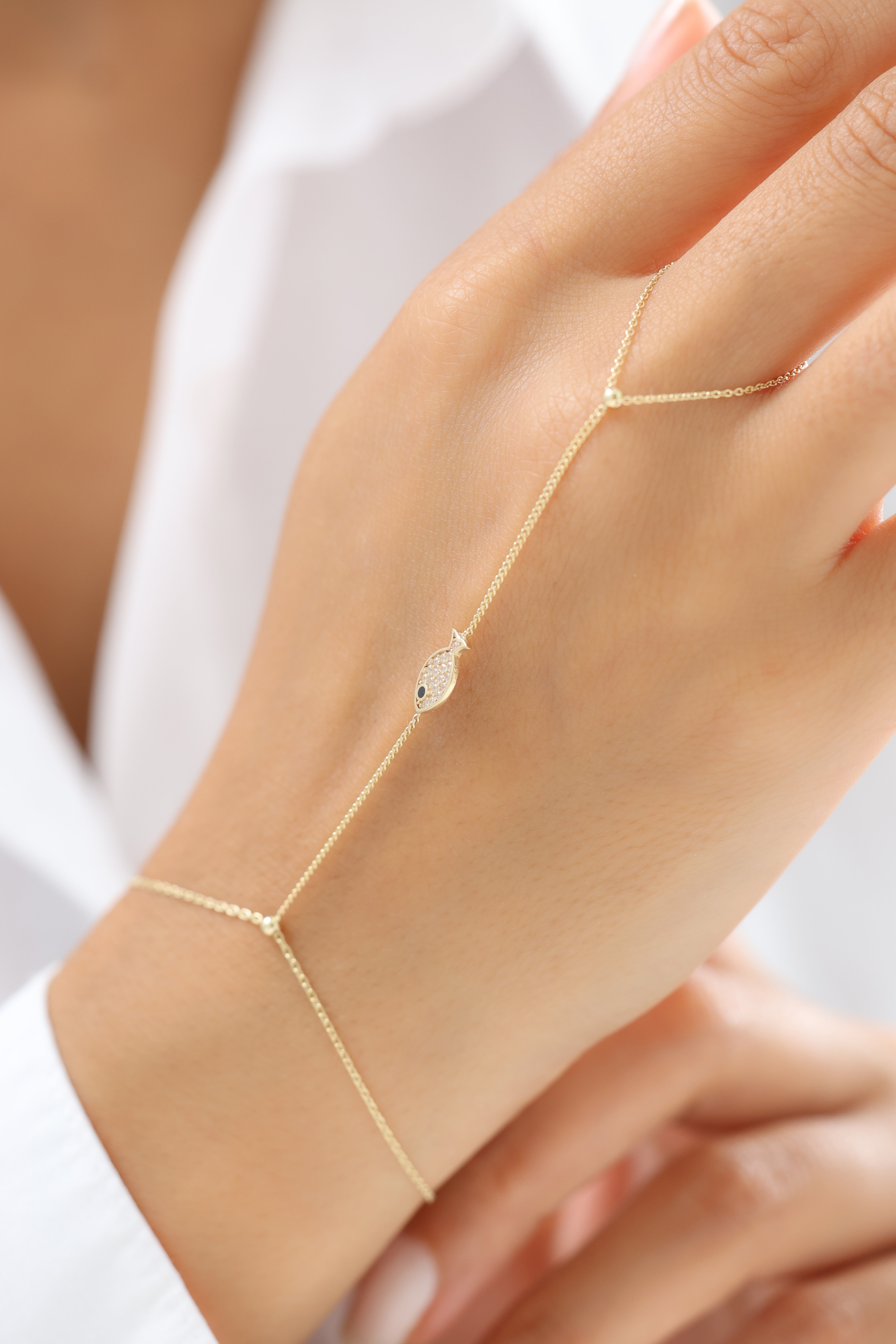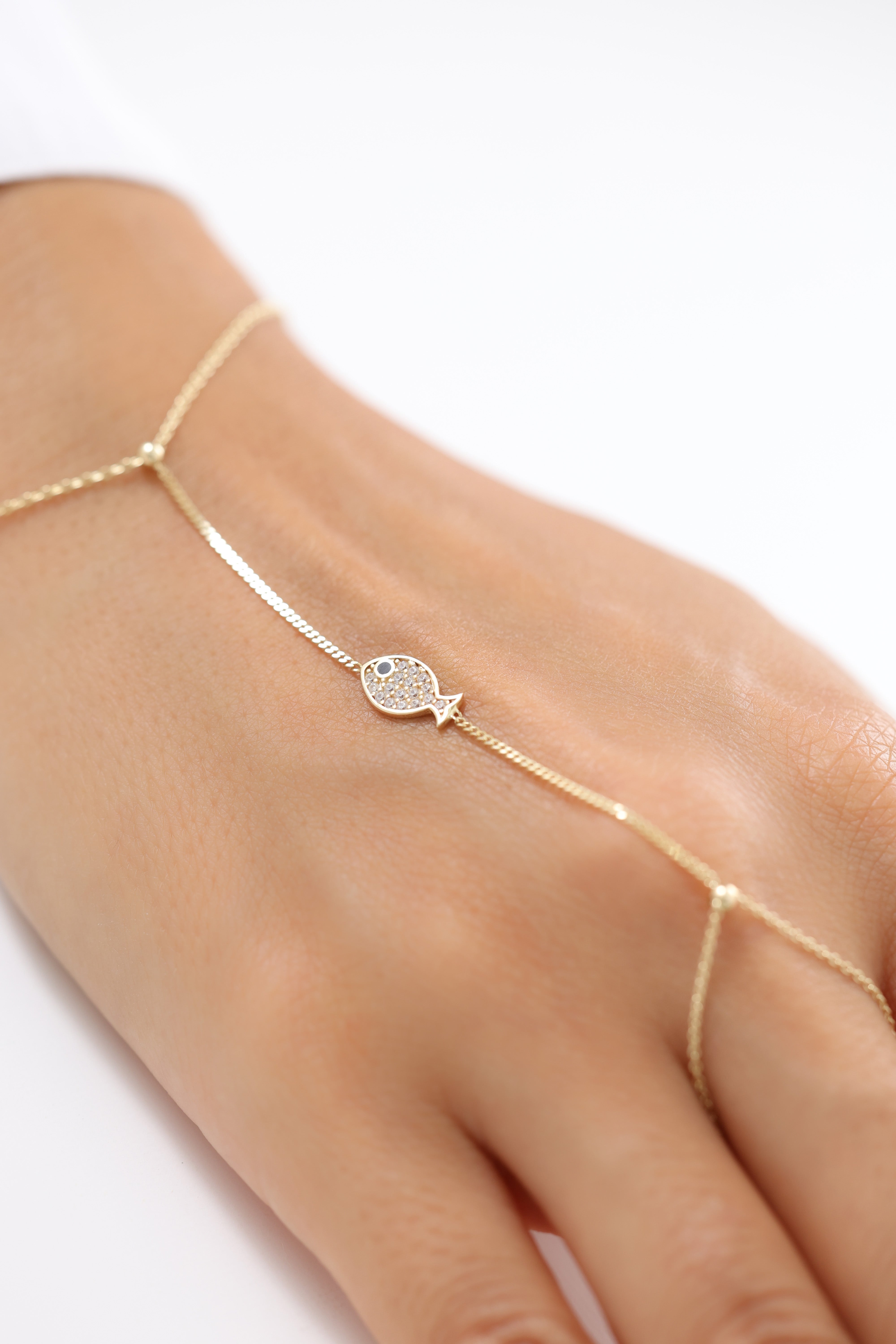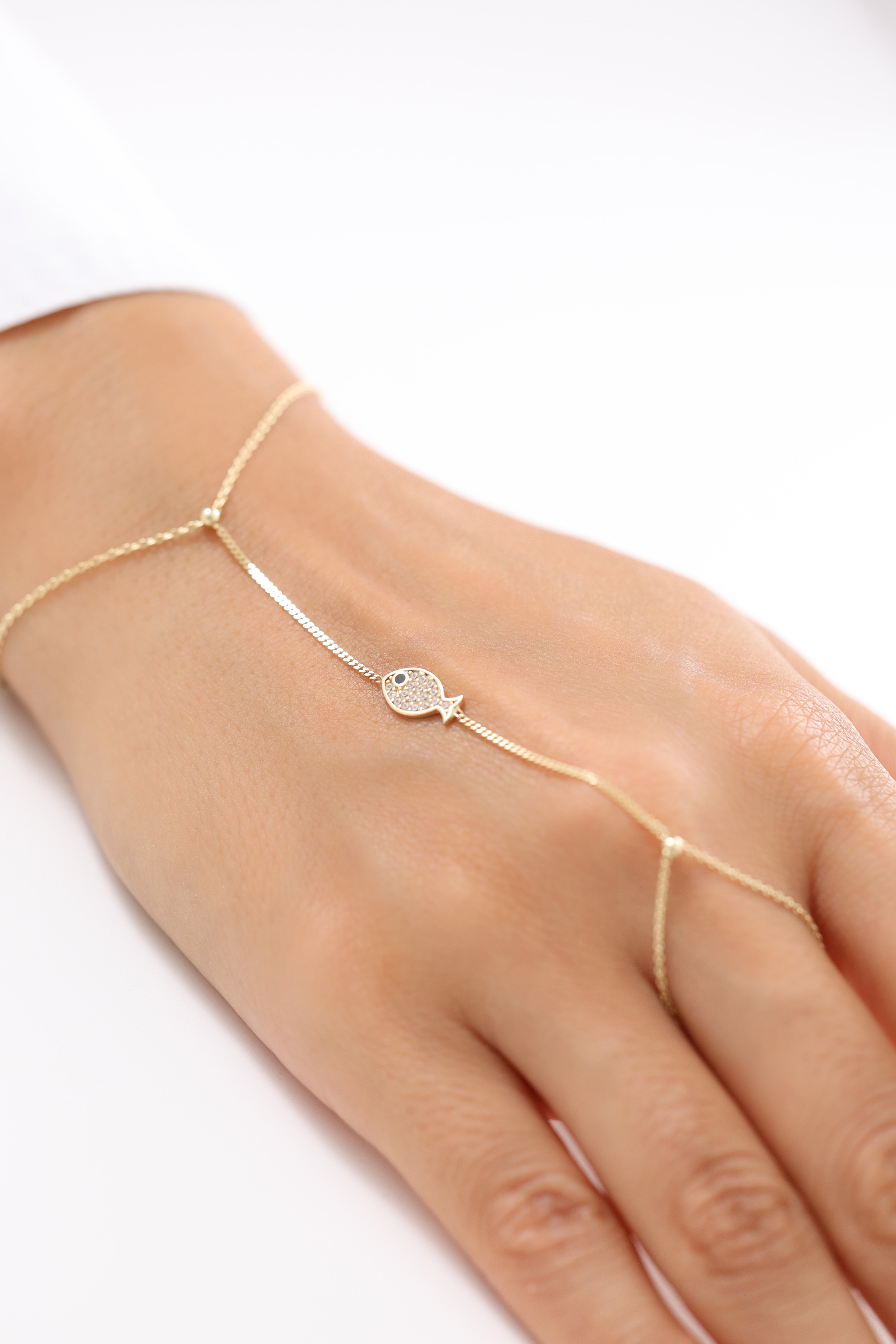 Taşlı Balık Figürlü 14 Ayar Altın Şahmeran