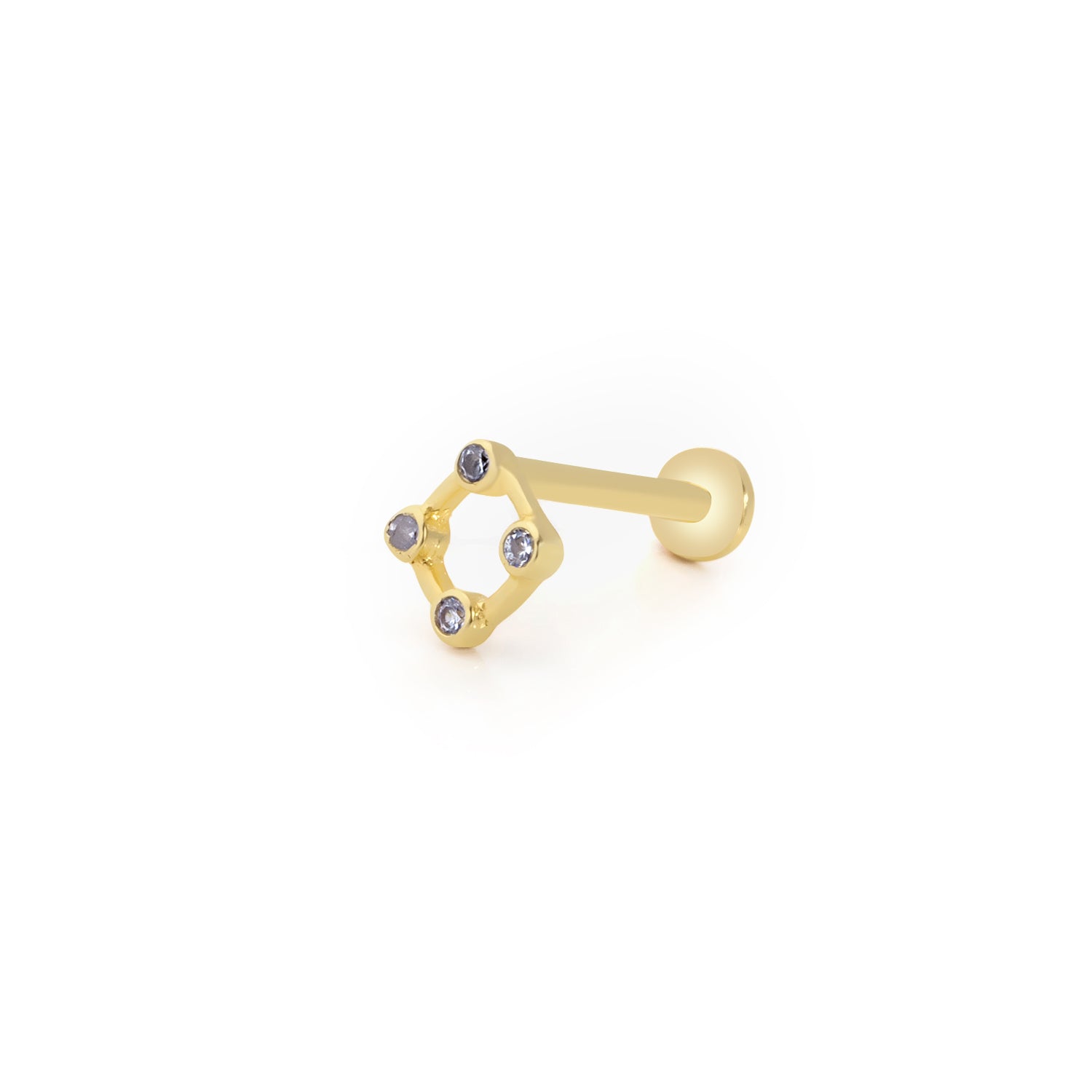 Taşlı Beşgen 14 Ayar Altın Piercing