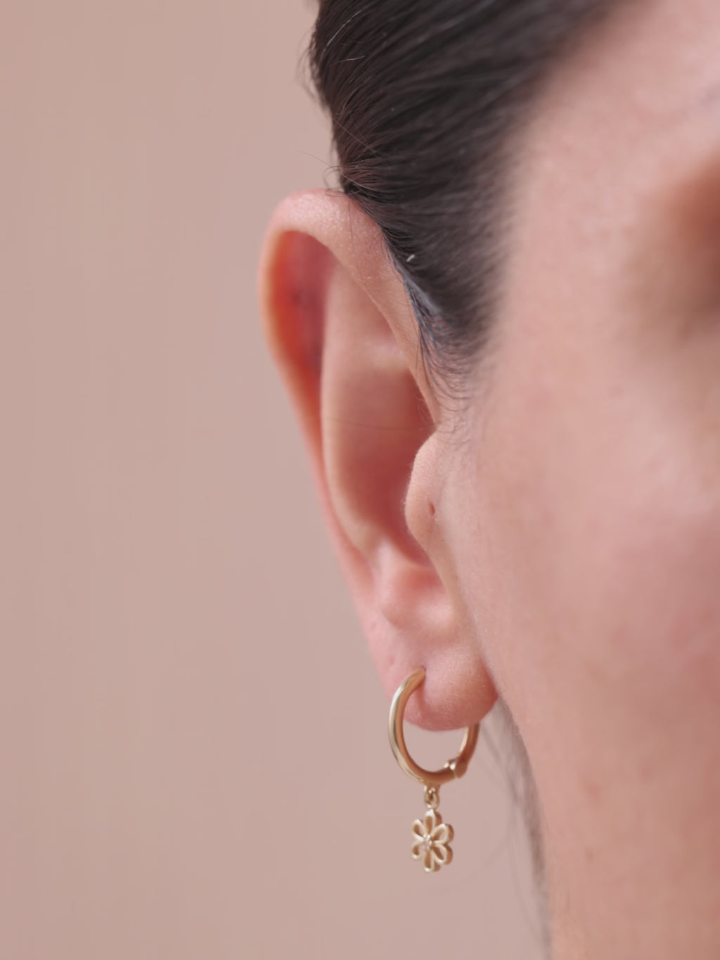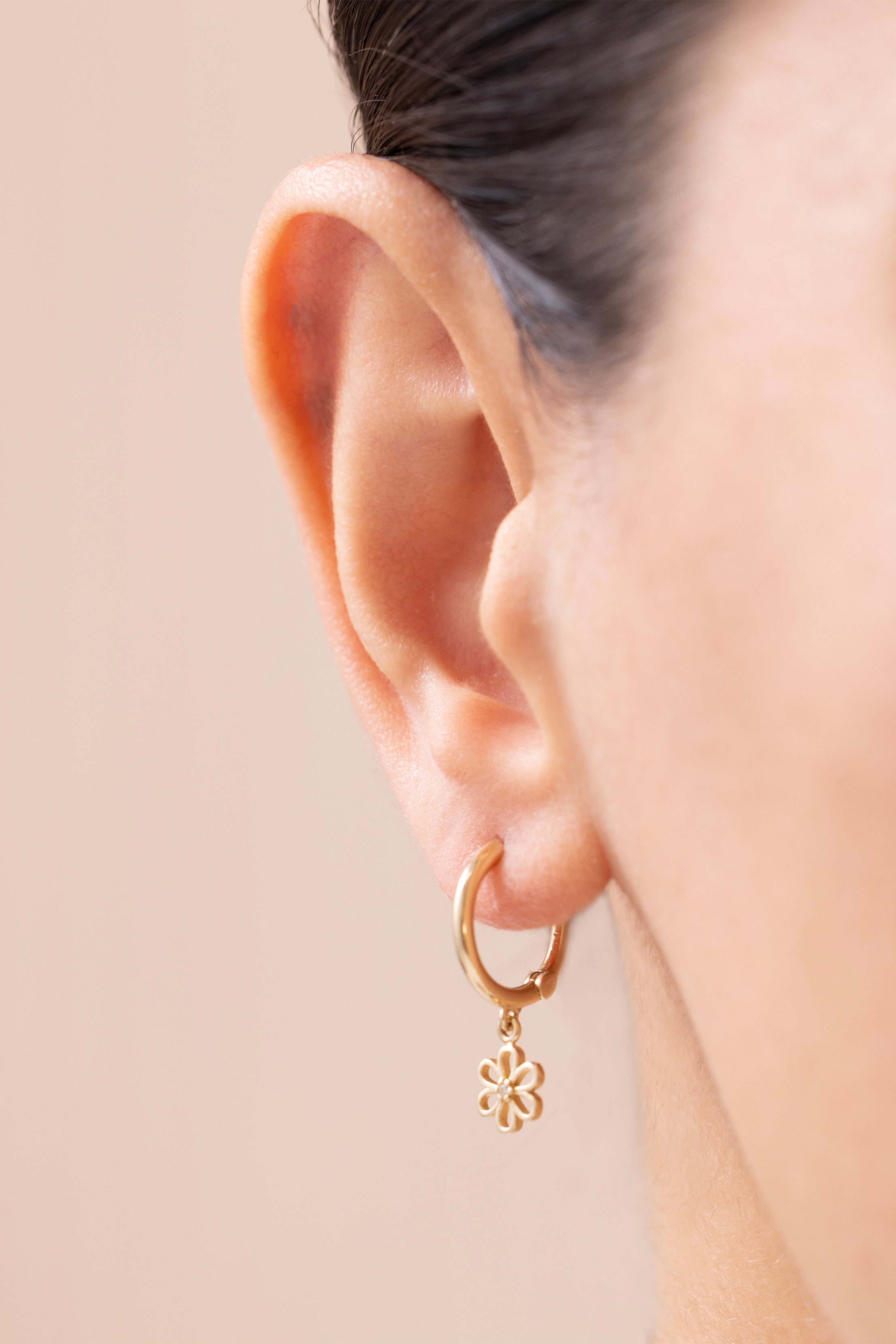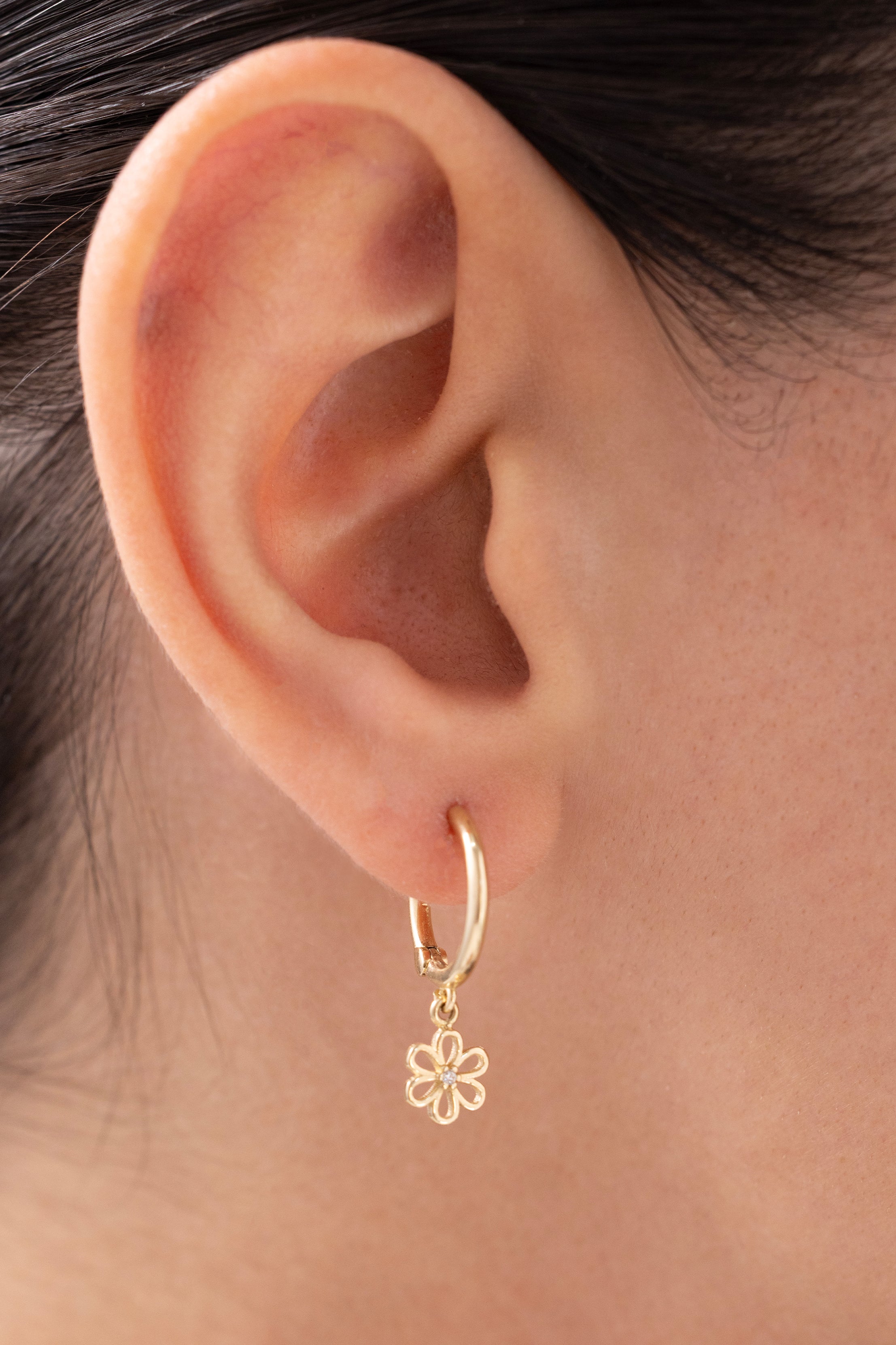 Taşlı Papatyalı 14 Ayar Altın Halka Küpe