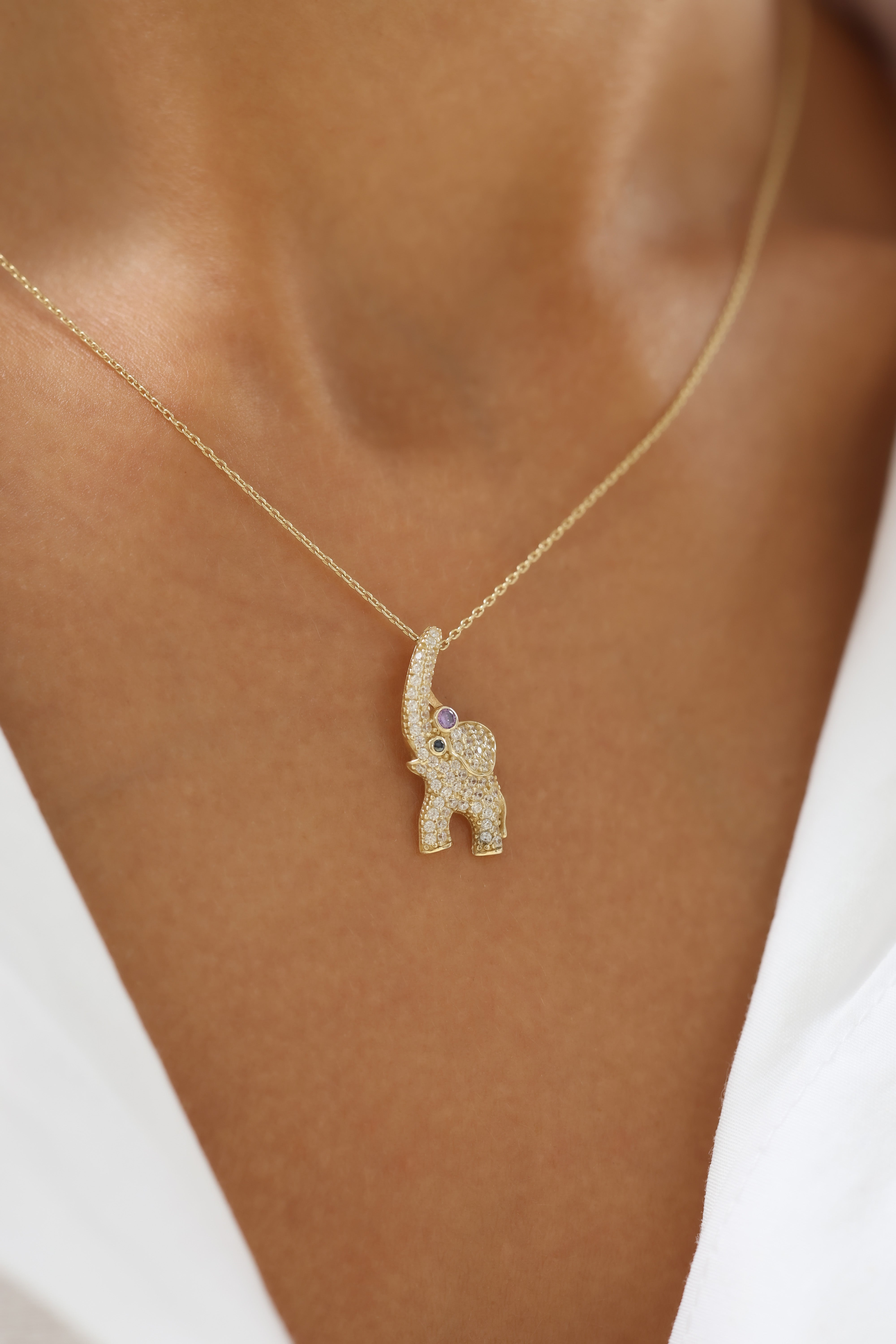 Kendinize her taktığınızda enerji veren bir parça arıyorsanız veya sevdiklerinize anlam dolu bir hediye vermek istiyorsanız, bu ışıltılı şans fil altın kolye, zarafetin ve iyi enerjinin en güzel ifadesidir.