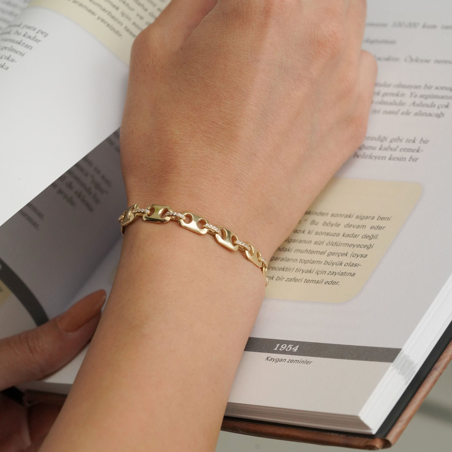 Taşlı Tasarım 14 Ayar Altın Bileklik