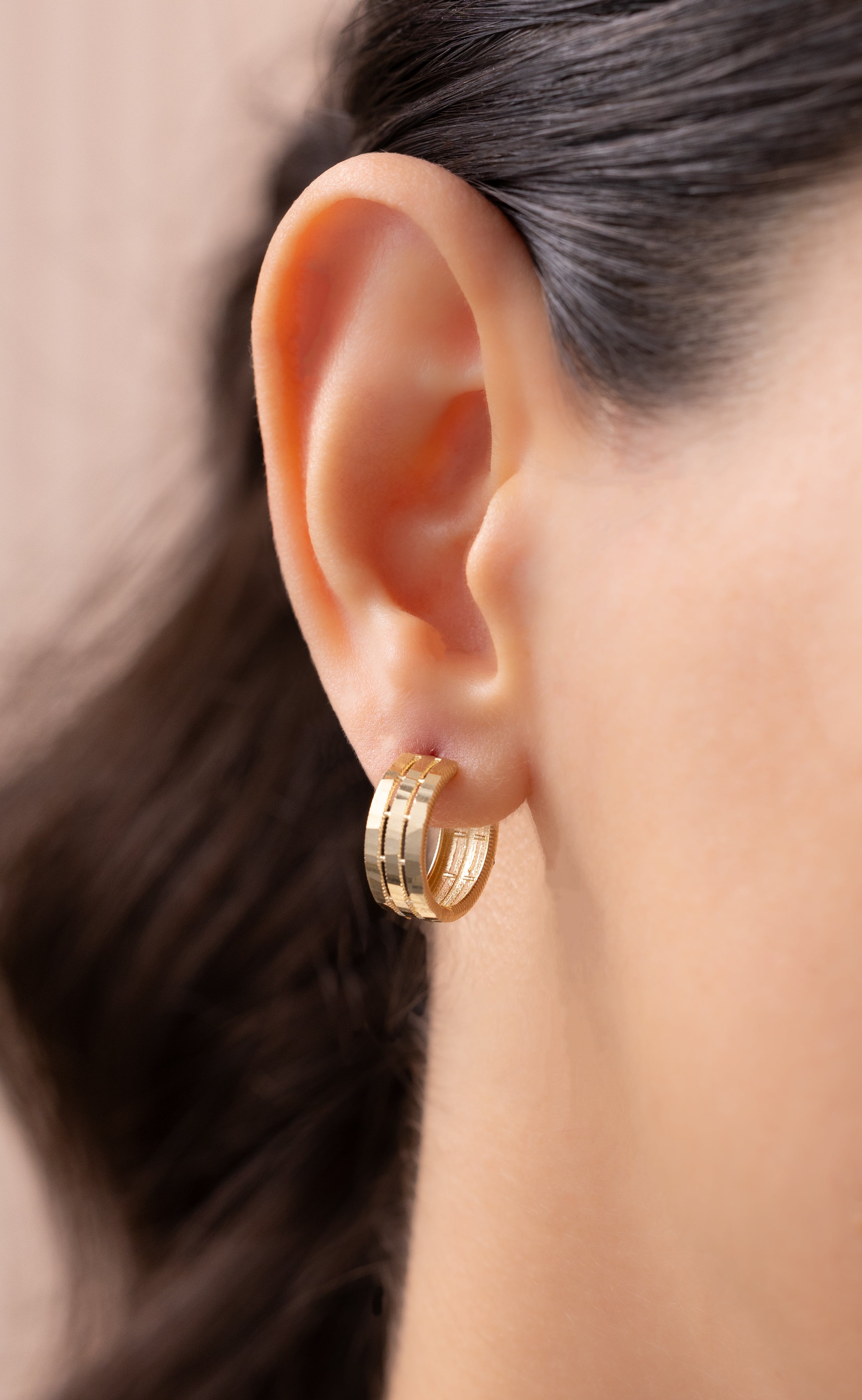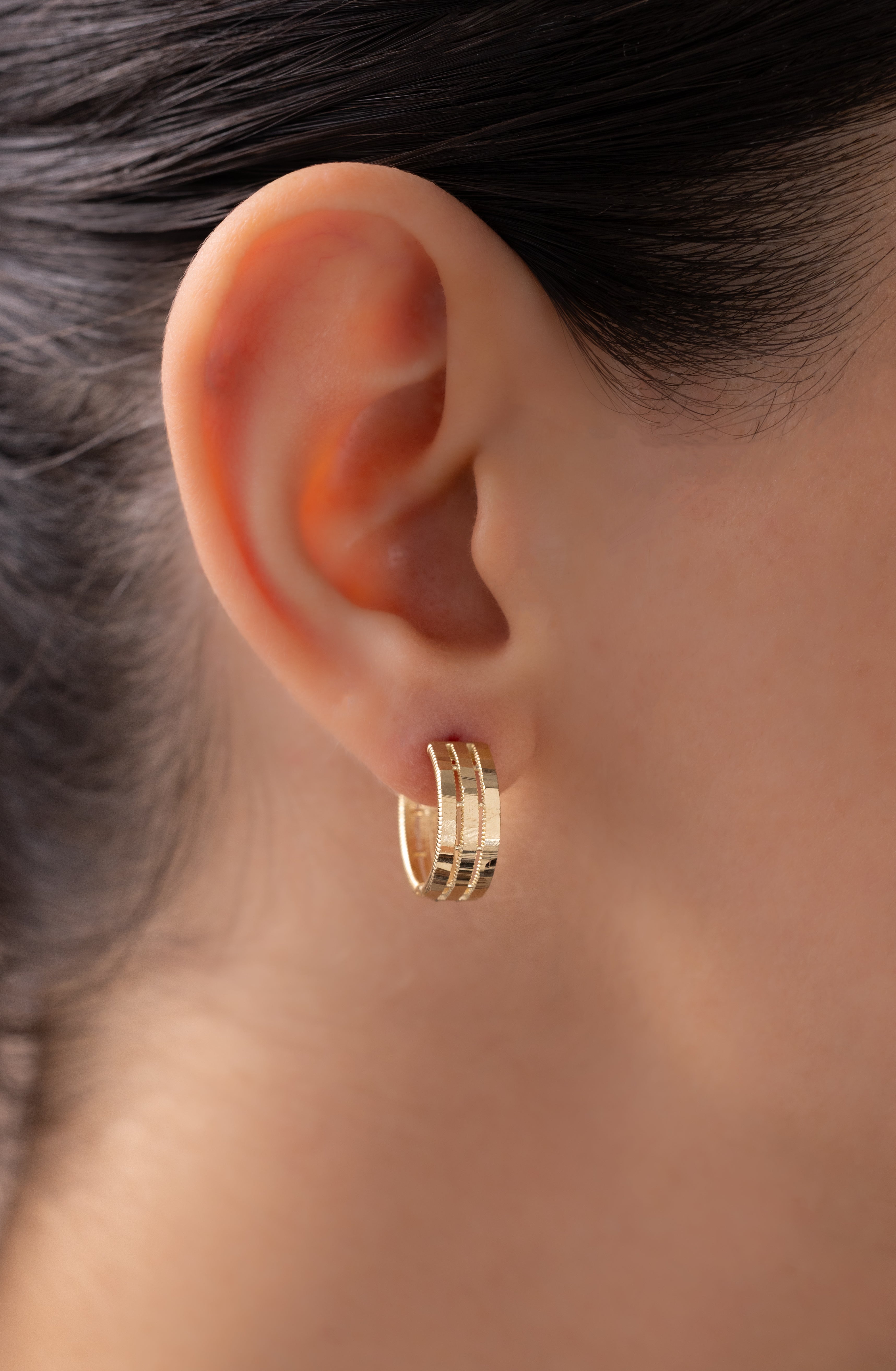Üç Şerit Işıltı 14 Ayar Altın Küpe size ulaşması için özenle hazırlanıyoruz. İşçiliğiyle göz kamaştıran bu eşsiz mücevher, siparişinizin ardından titizlikle paketlenir ve size özel olarak gönderilir. Teslimat sürecimiz, siparişinizin detaylarına ve bulunduğunuz konuma göre değişiklik gösterebilir; ancak genellikle 3-7 iş günü arasında tamamlanmaktadır. gram ağırlığında 14 Ayar Altın kullanılarak üretilmiştir.