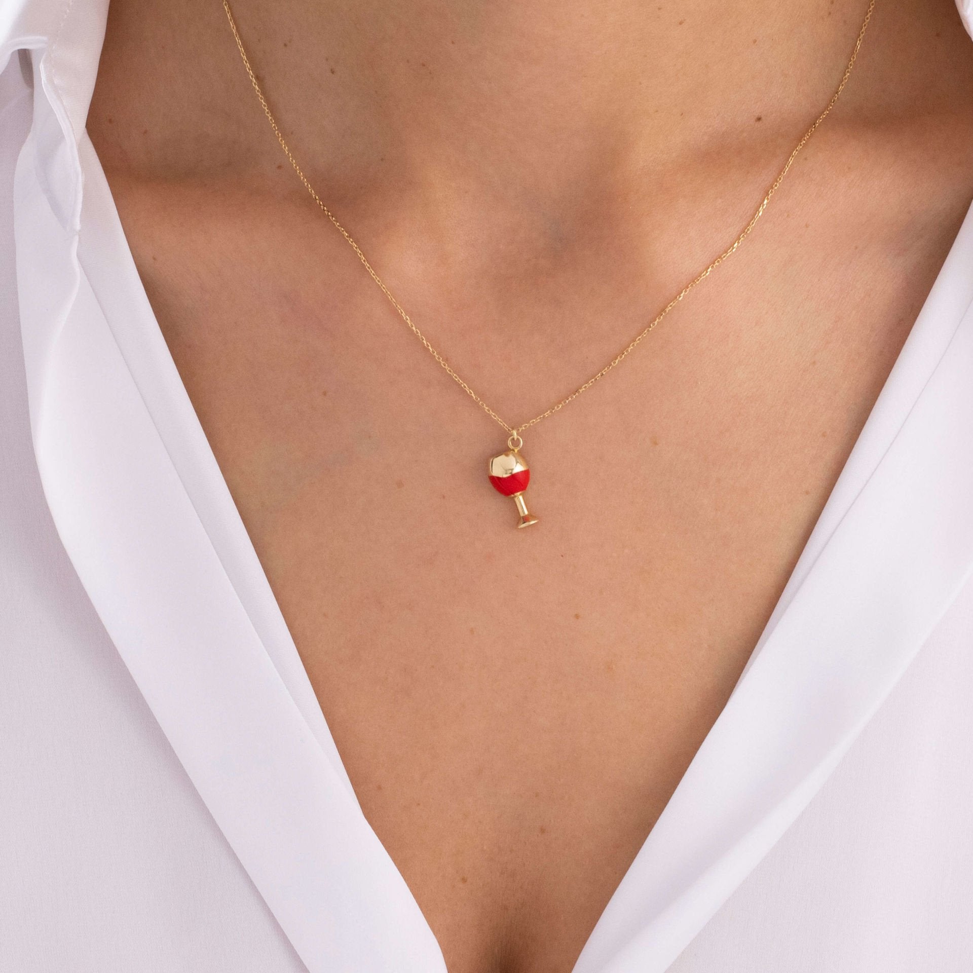 Kadeh formu, zarif zincir üzerinde adeta bir kutlama anını taşır.