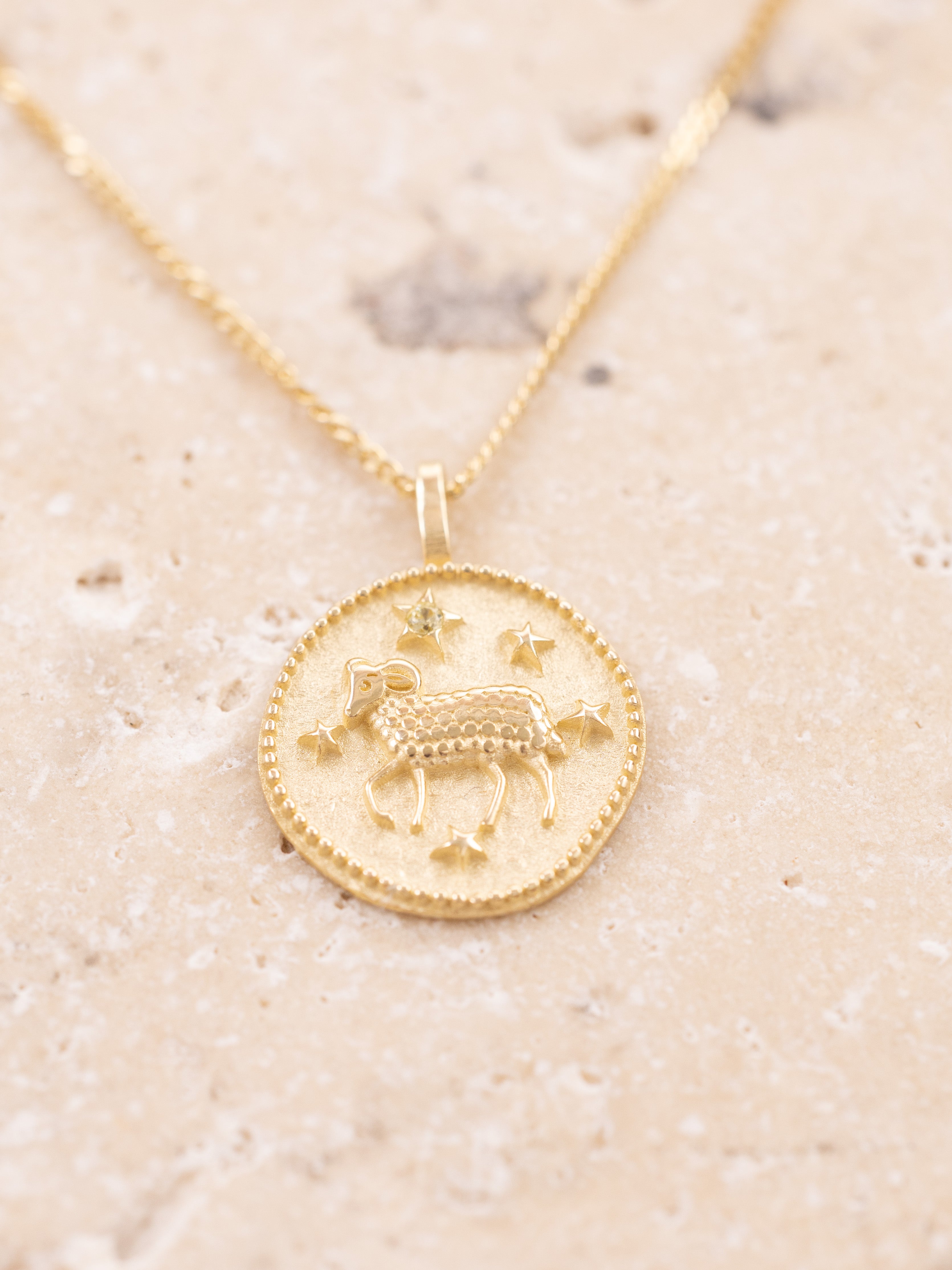 Koç burcunun enerjik, öncü ve cesur ruhunu simgeleyen bu özel kolye, nostaljik detaylarla çağdaş bir dokunuşu birleştiriyor. Altın madalyon formundaki kolyeye işlenmiş Koç figürü ve yıldızlar, burcun liderlik gücünü ve parlak enerjisini zarifçe yansıtıyor. Vintage esintili bu tasarım, Koç burcunun kendine güvenen ruhunu stiline taşımak isteyenler için eşsiz bir seçim.