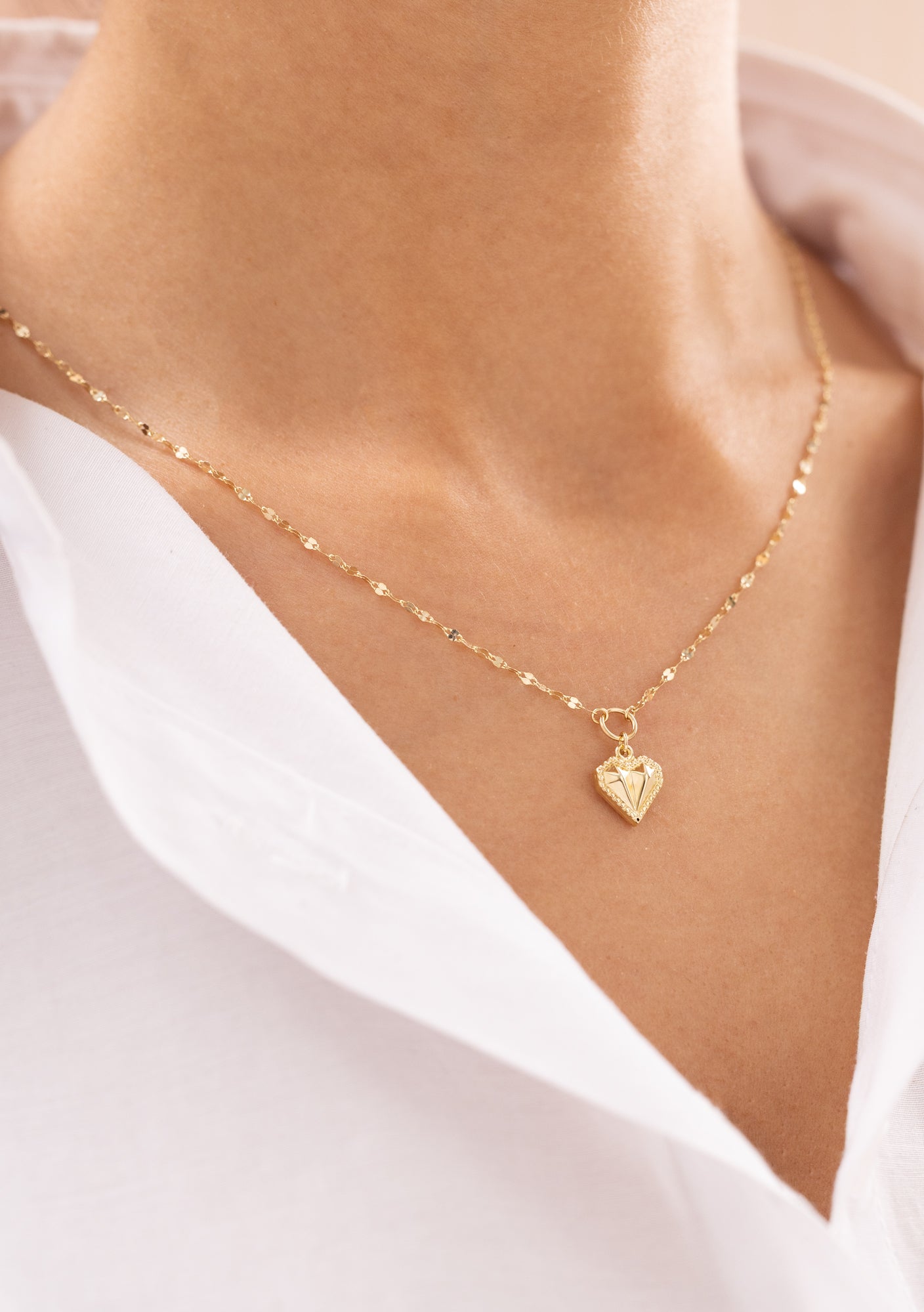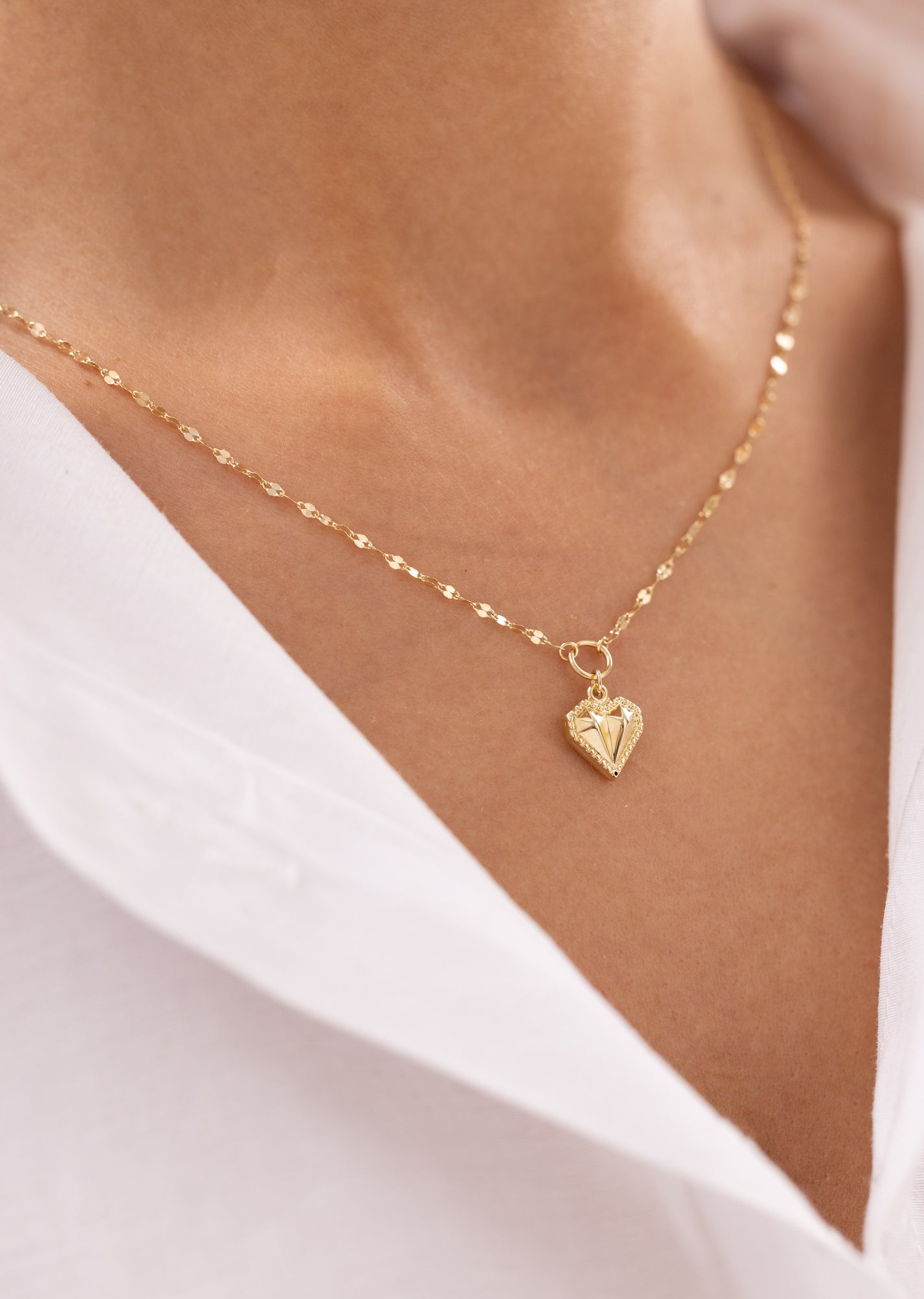 Parlak altın yüzeyi ve zarif zinciri, her kombine sıcak bir dokunuş katar.Sevginin, sadakatin ve zarafetin simgesi olarak tasarlanan bu parça, hem günlük kullanımda hem de özel anlarda şıklığınızı tamamlar.