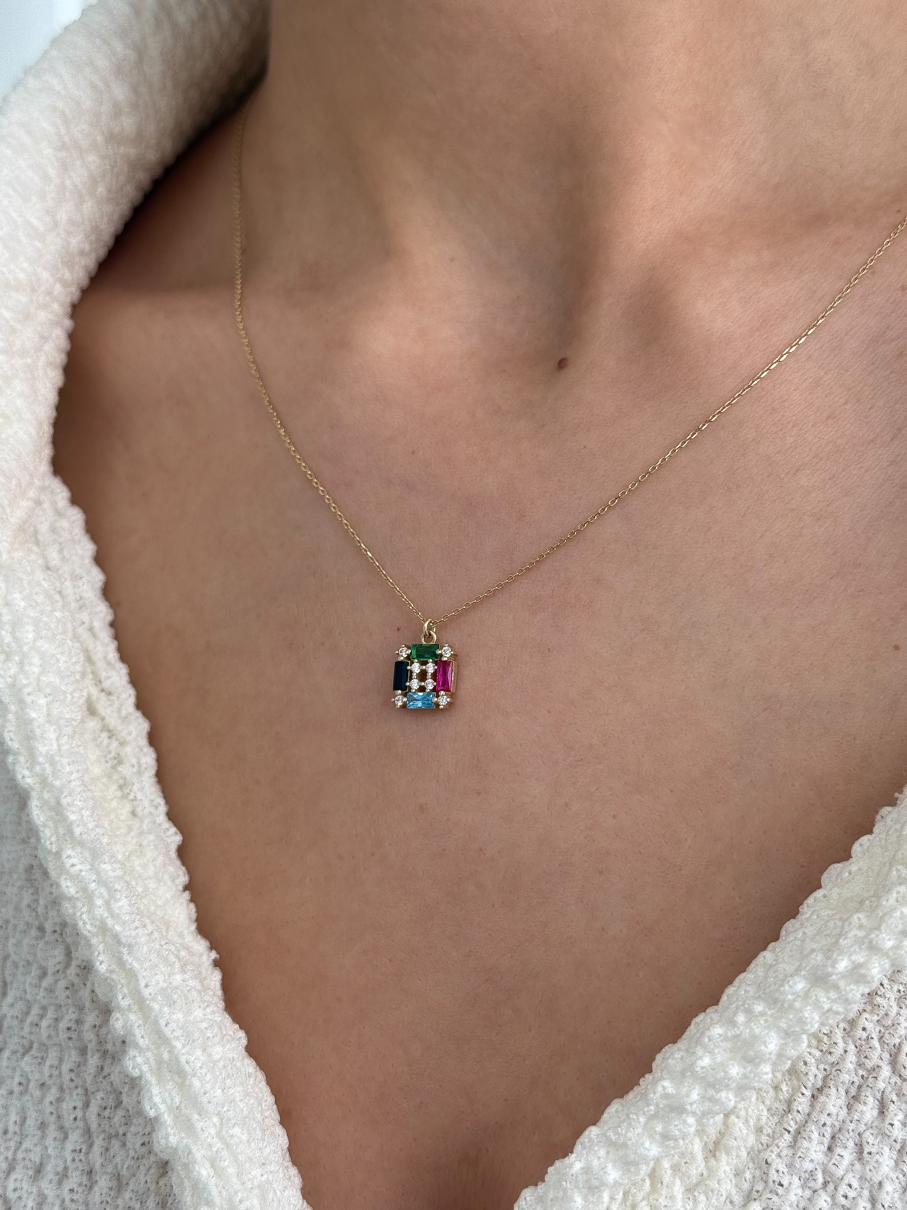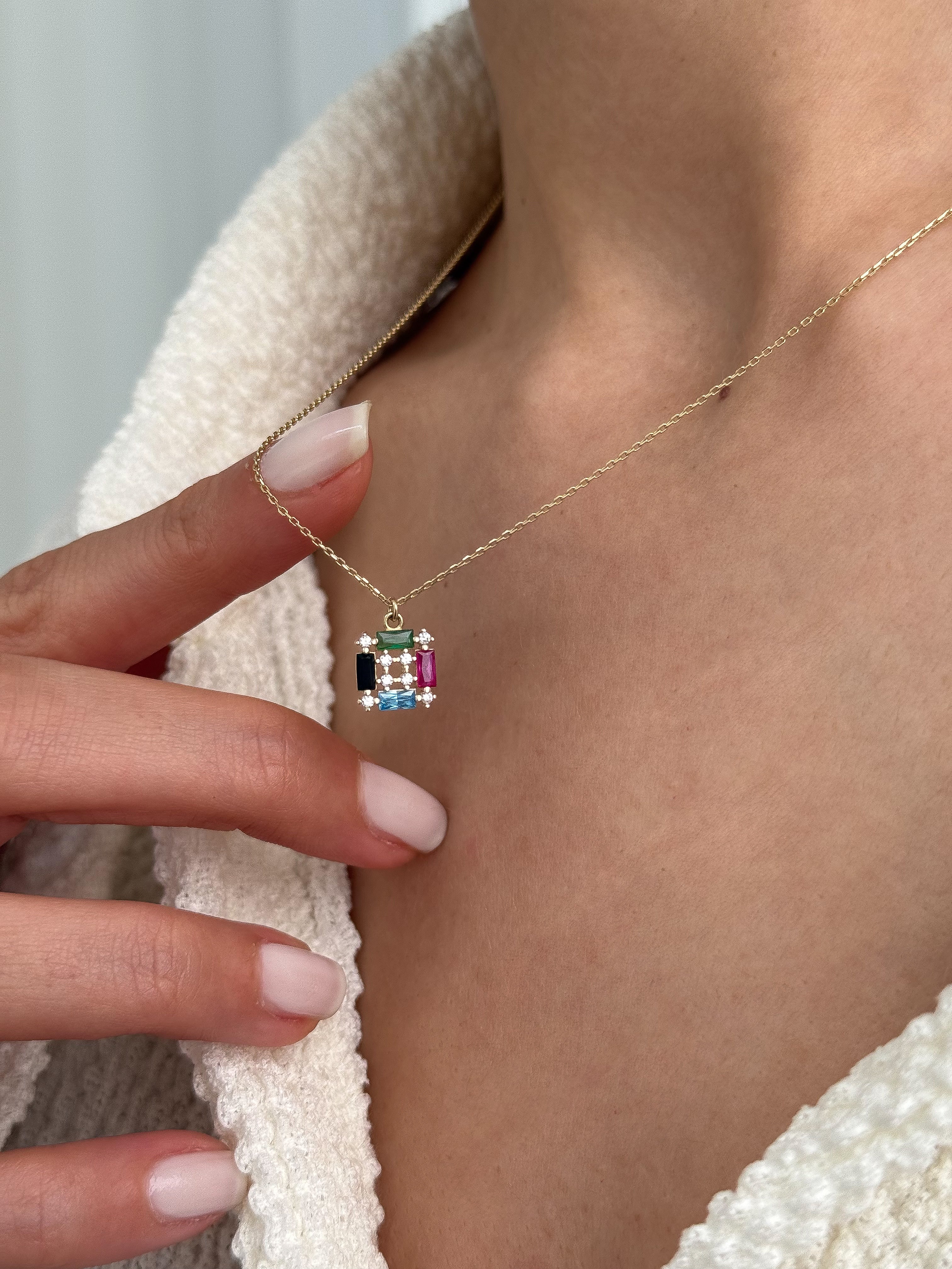 Wind Renkli Taşlı 14 Ayar Altın Kolye