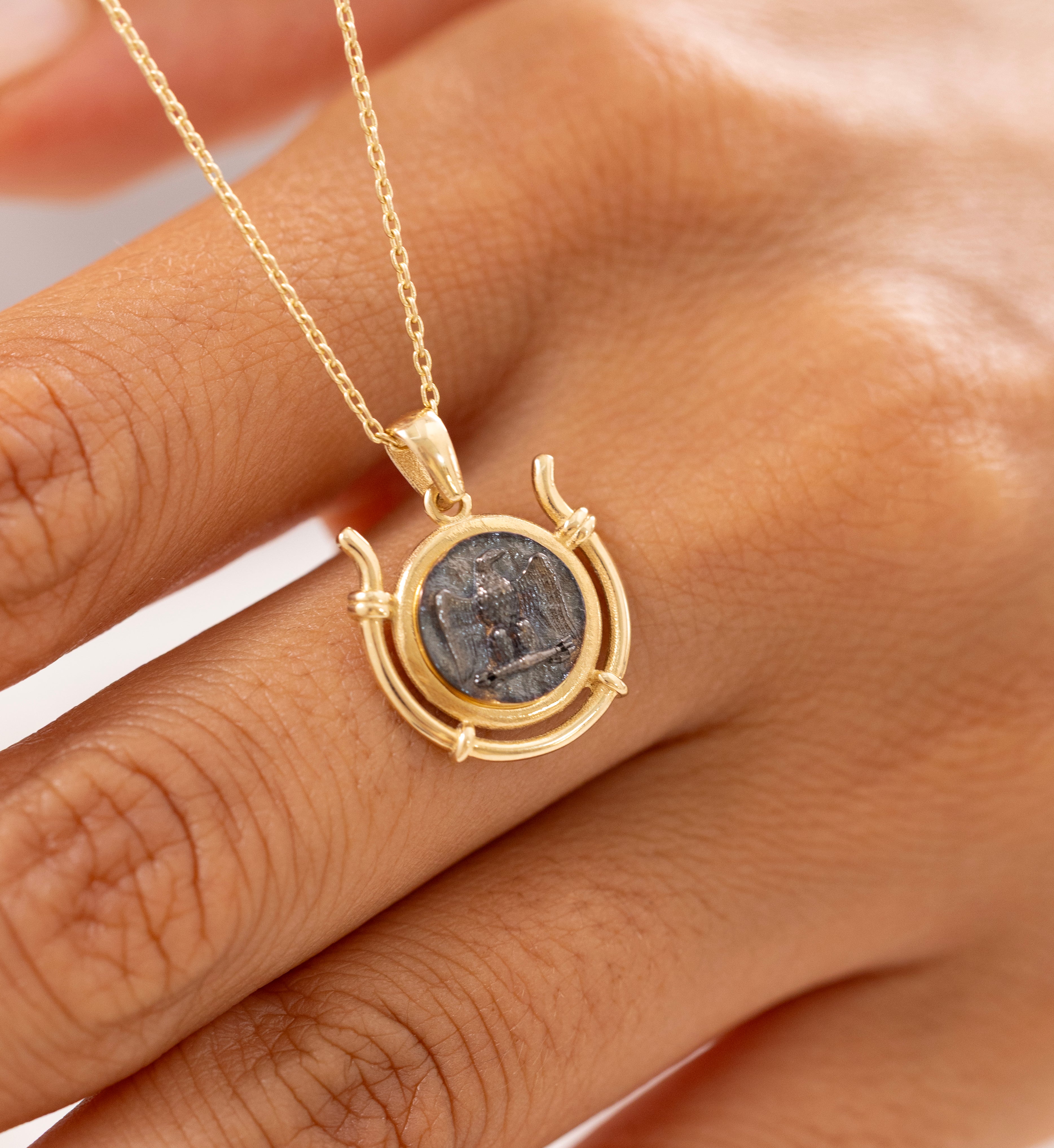 Bu kolyenin merkezindeki antik figür, o dönemin bir parçası — bir imparatorluğun gölgesinde doğmuş, zamanı aşmış bir sembol.