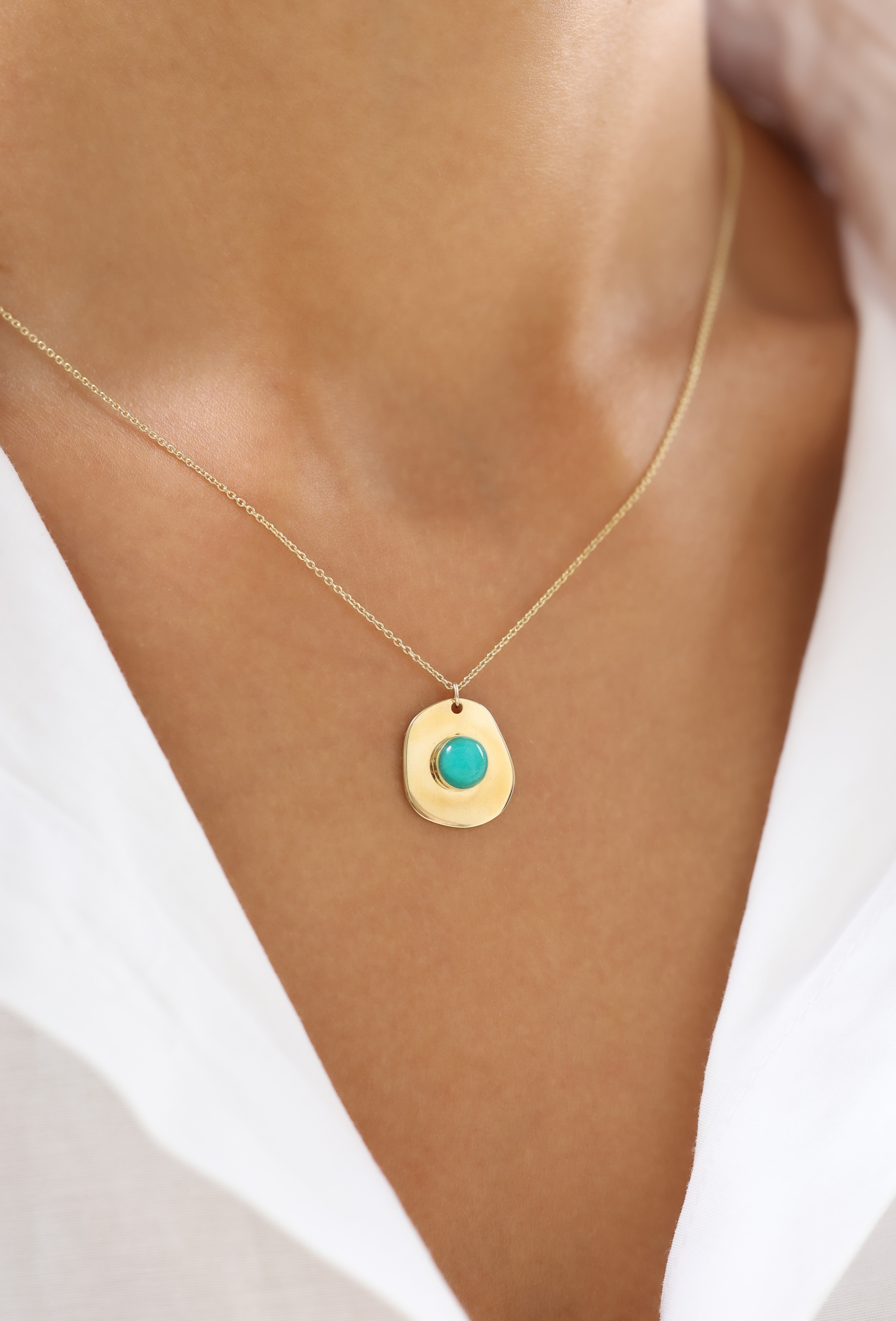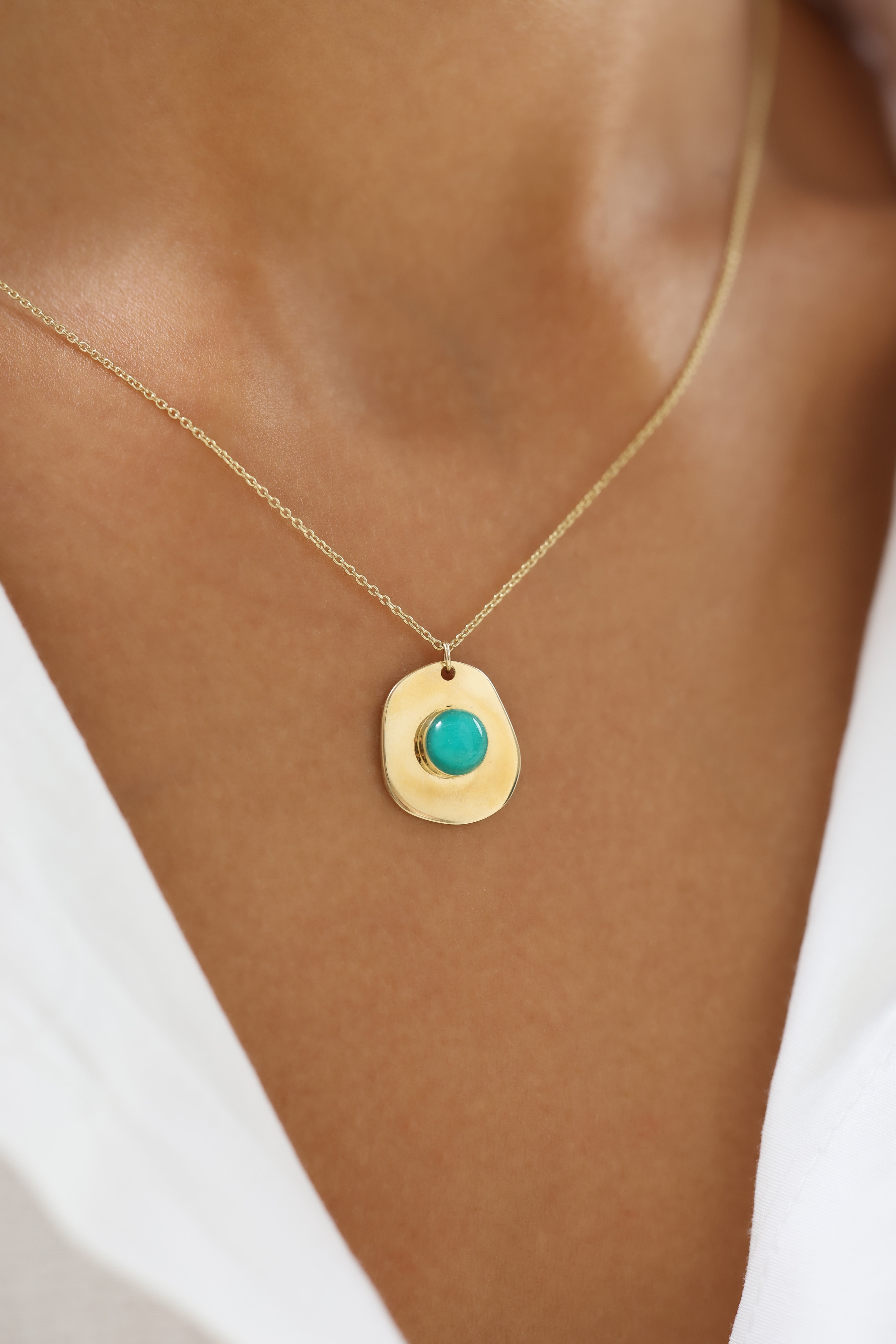 Yeşil Taşlı Oval 14 Ayar Altın Kolye