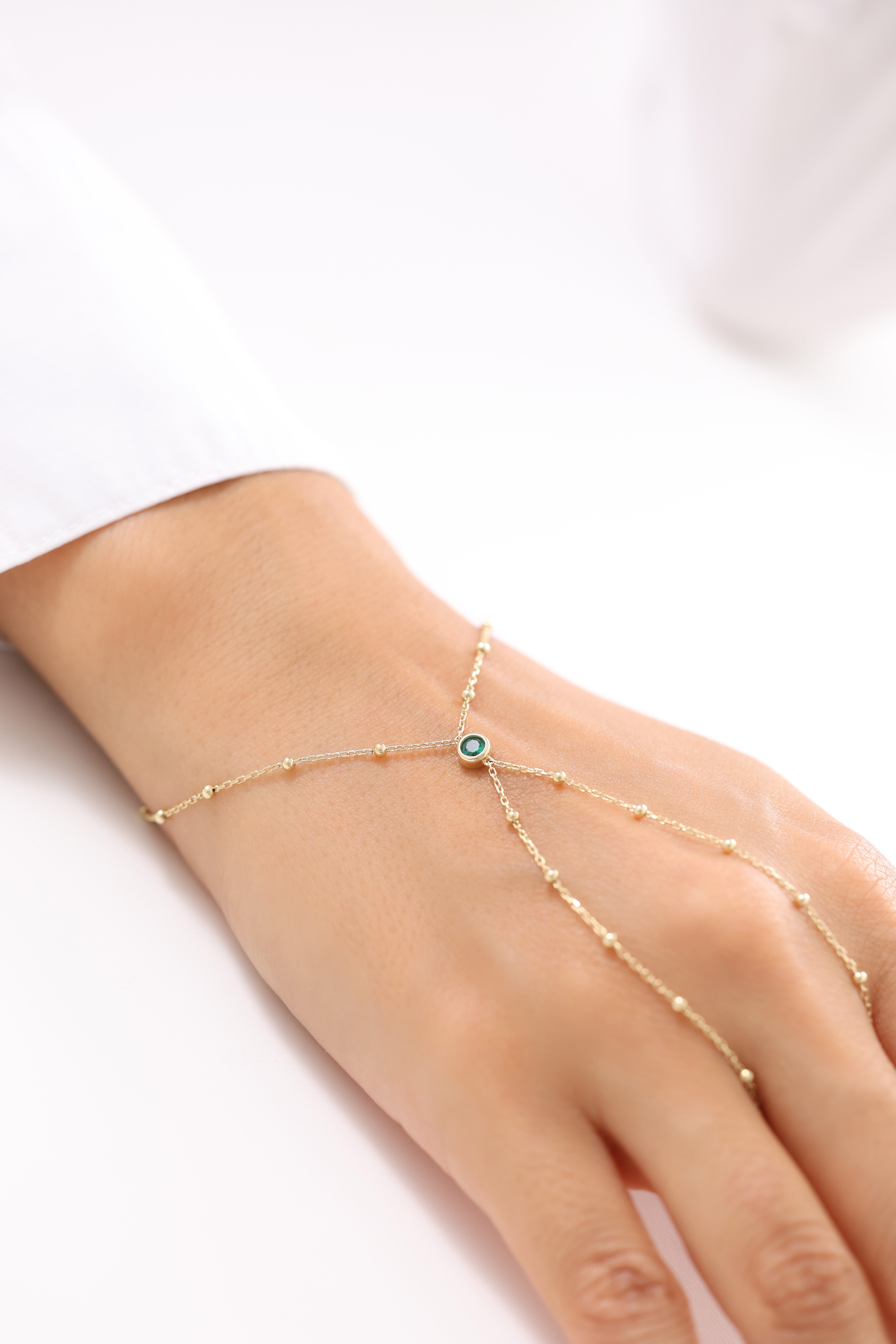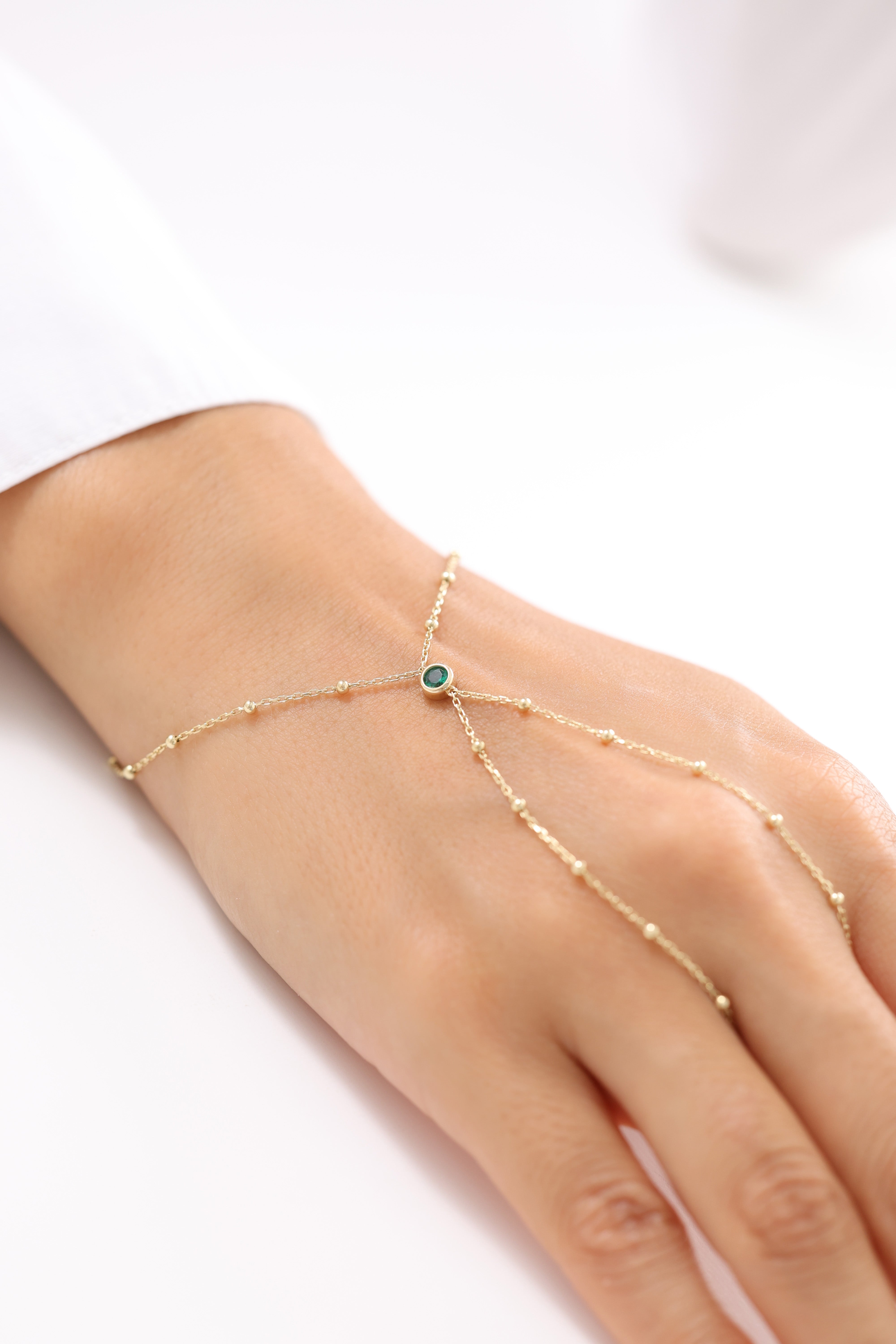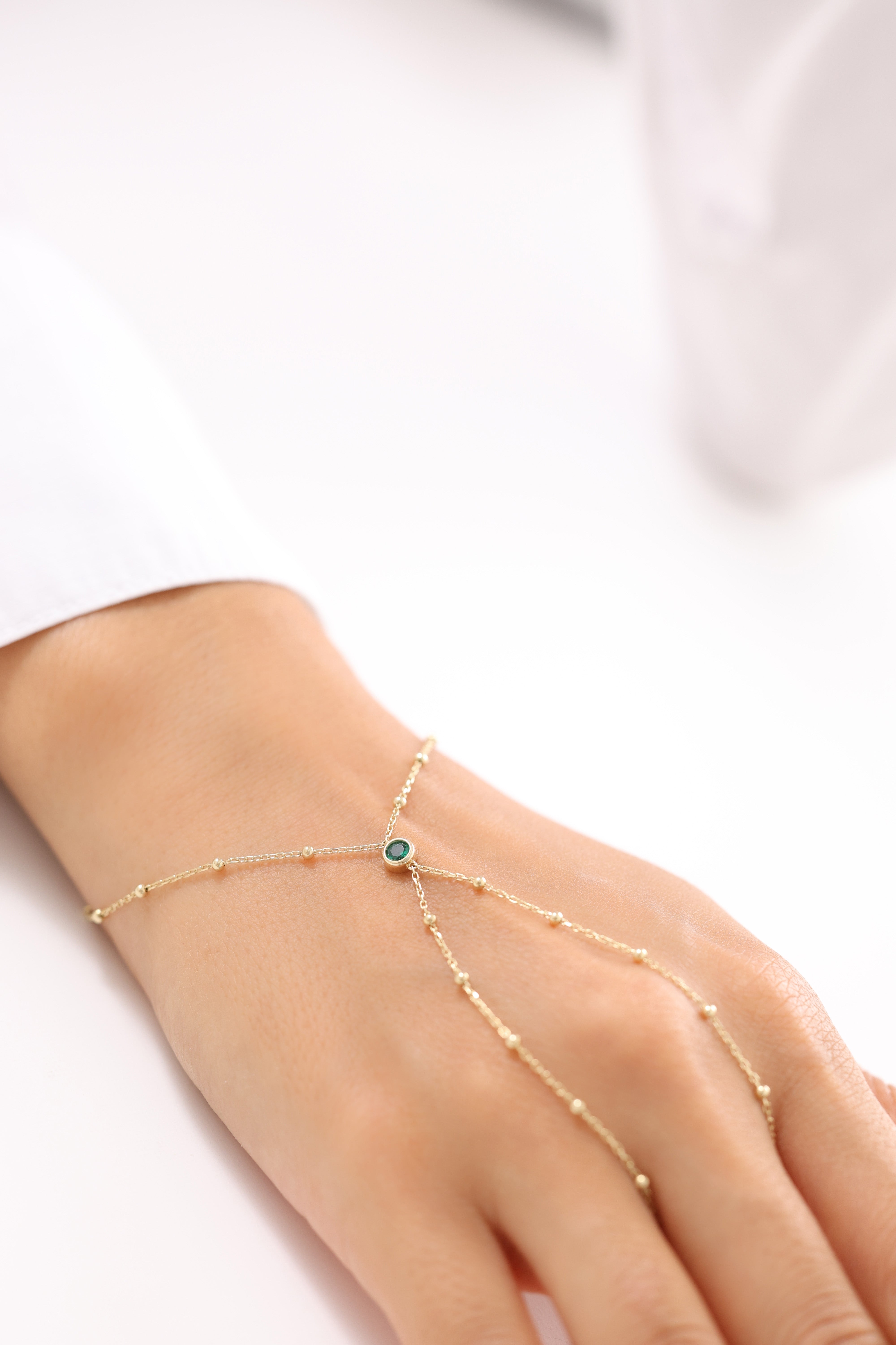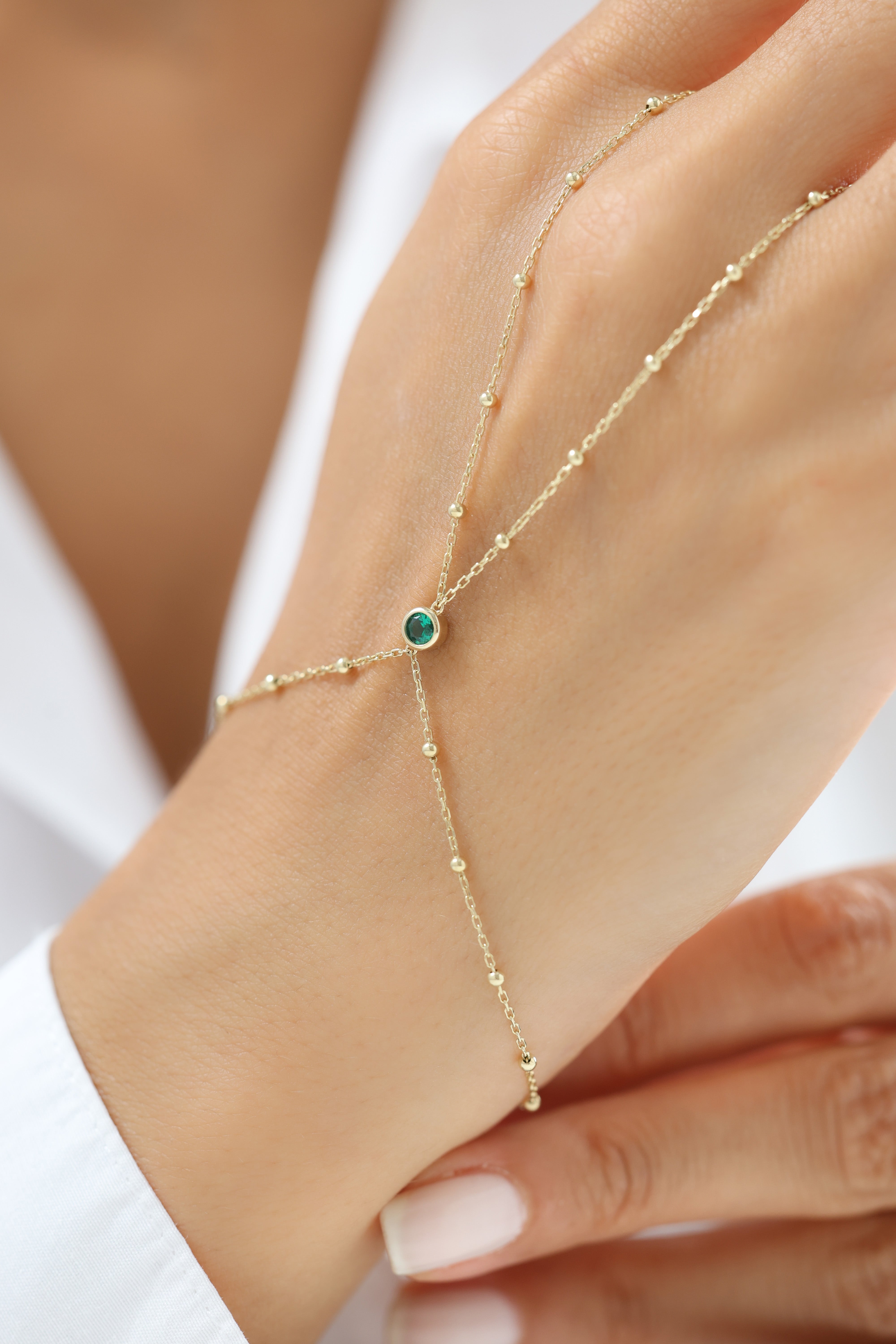 Yeşil Taşlı Toplu Zincir 14 Ayar Altın Şahmeran