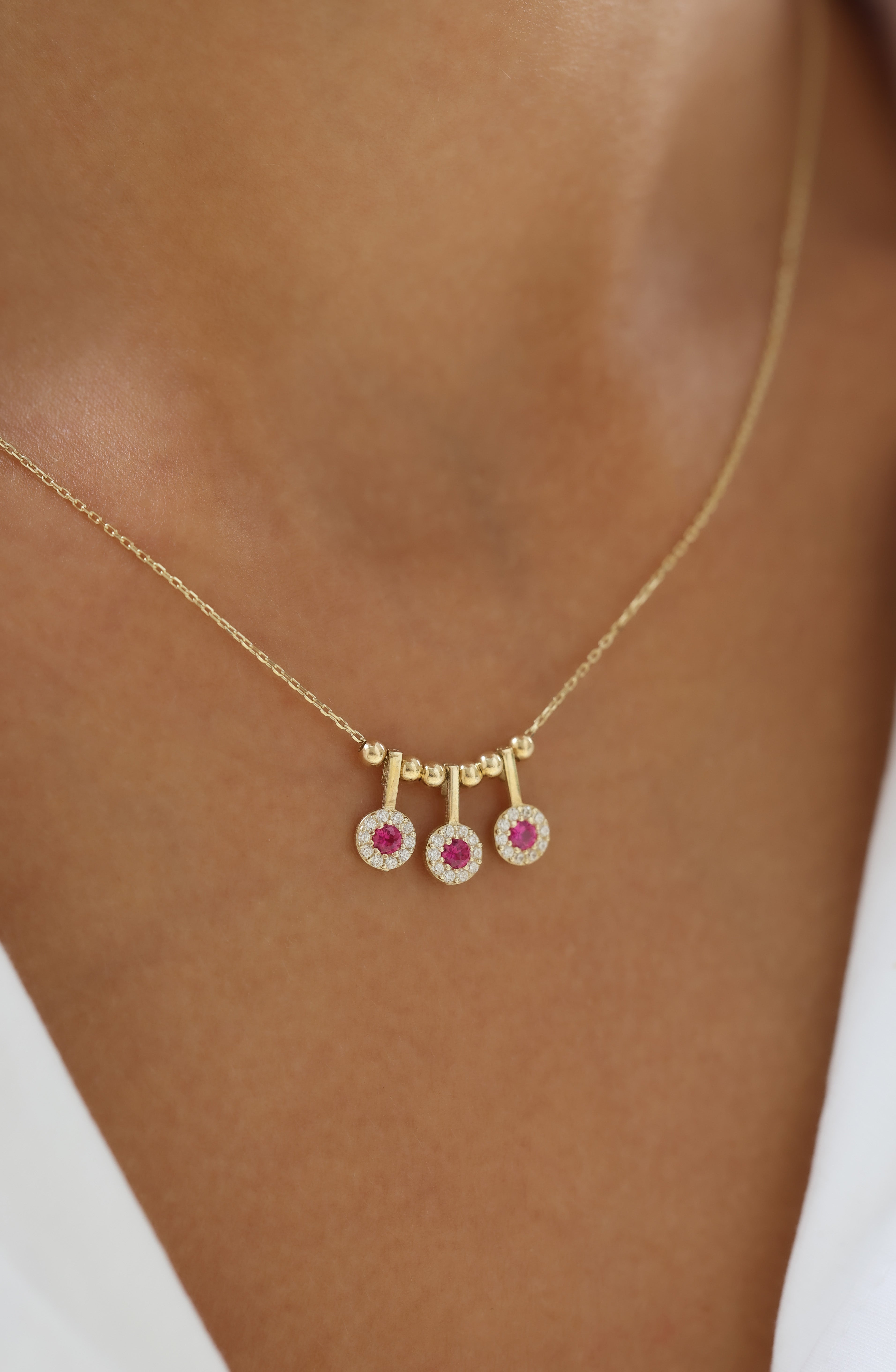 Üç ayrı yuvarlak formun zarif sallantısı, boyunda hareketli ama sofistike bir etki yaratıyor. Mor taşın romantik tonları ise feminen bir dokunuş katıyor.Günlük stiline kolayca uyum sağlar, özel gecelerde ise ışığı en zarif şekilde yansıtır.